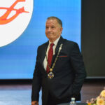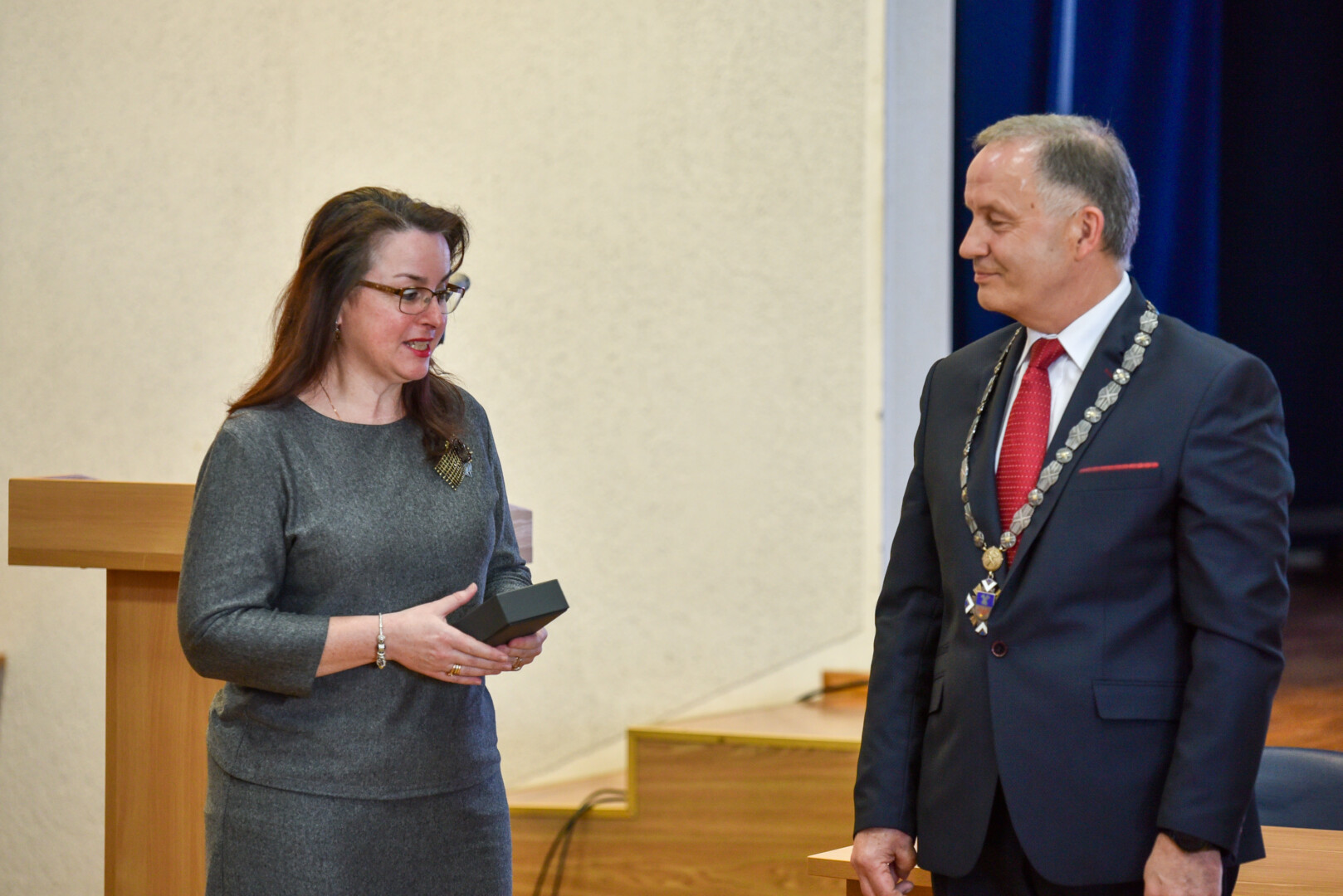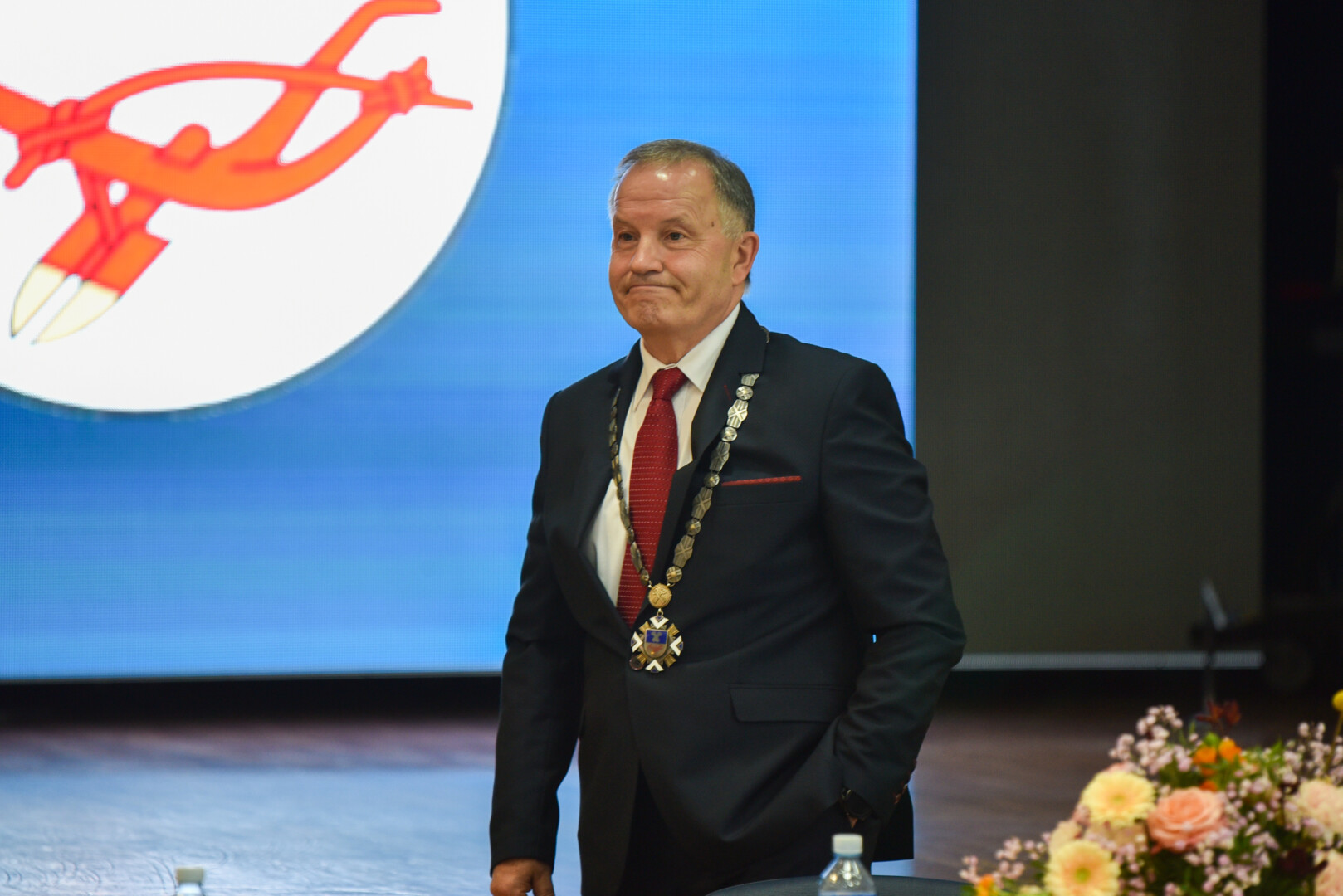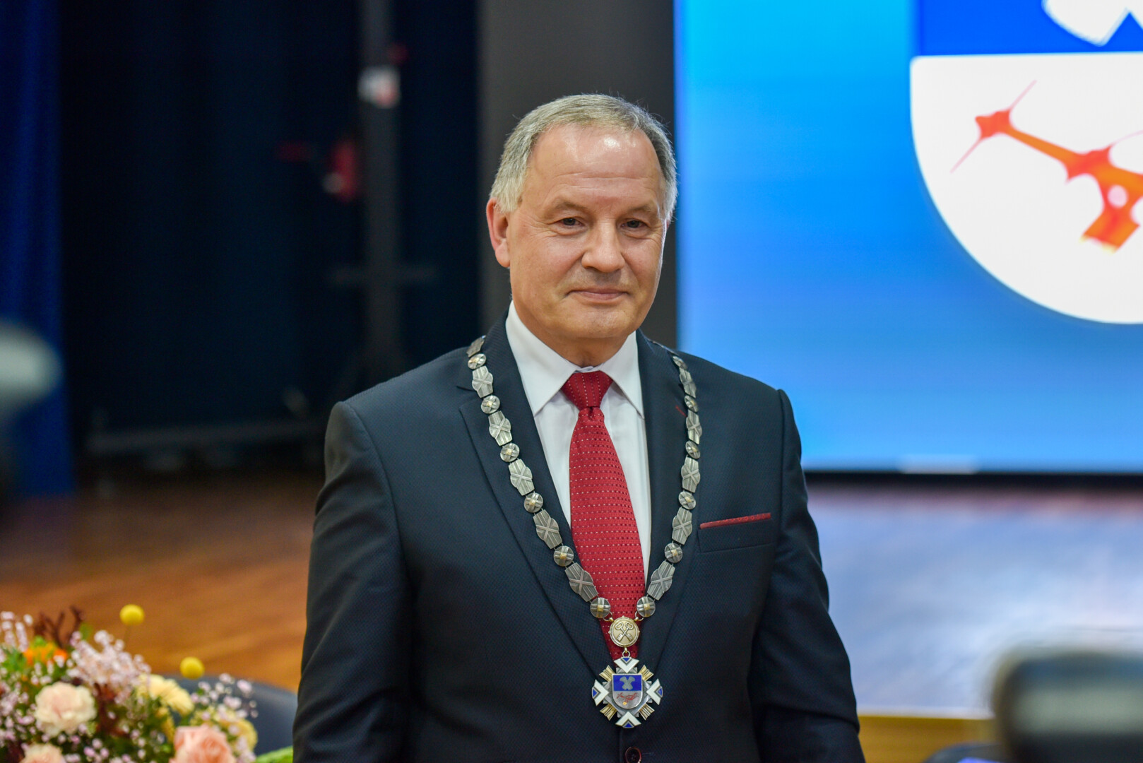 Skambant fanfaroms, P. Žagunis jam perdavė mero regalijas.