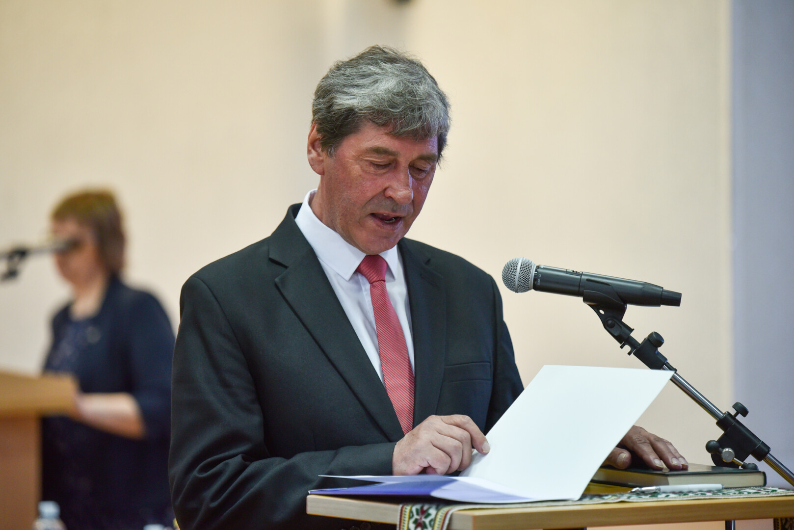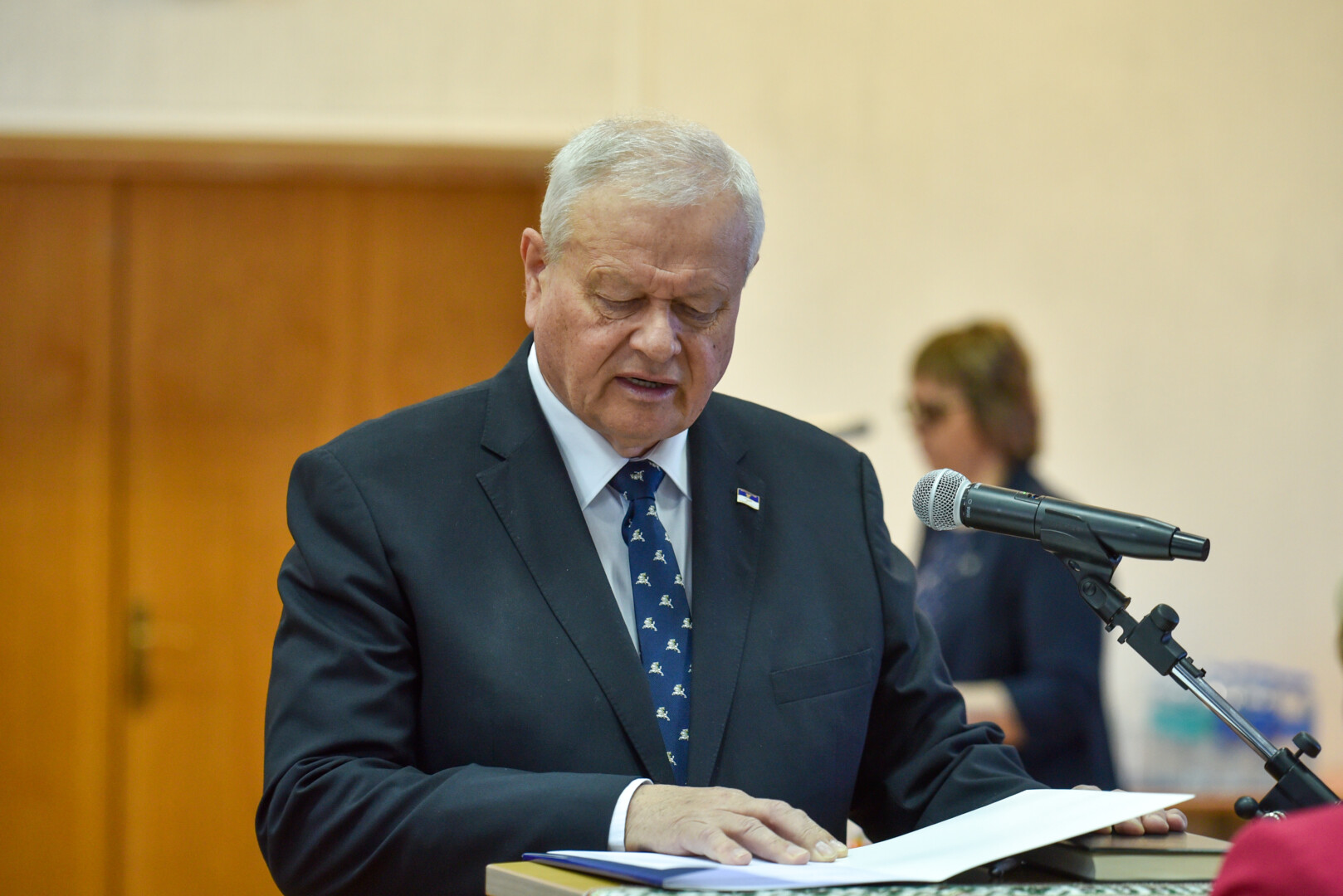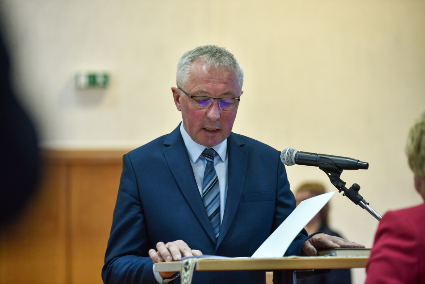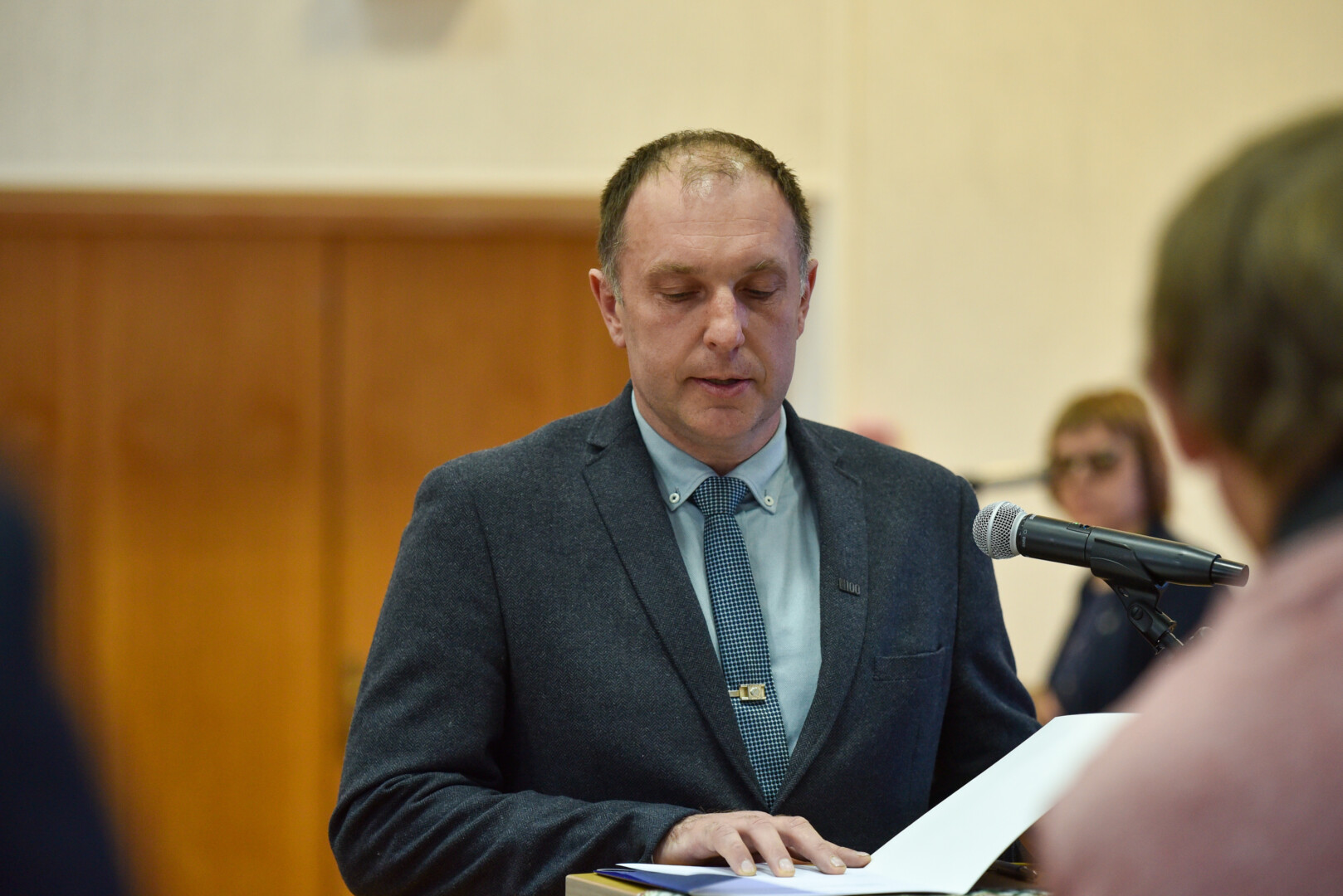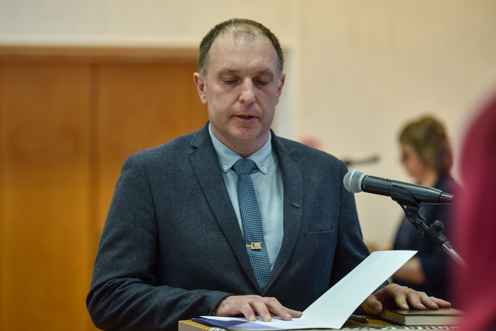 Po Tarybos narių priesaikų ant Konstitucijos padėjęs ranką priesaiką davė ir naujasis Panevėžio rajono meras socialdemokratas Antanas Pocius.