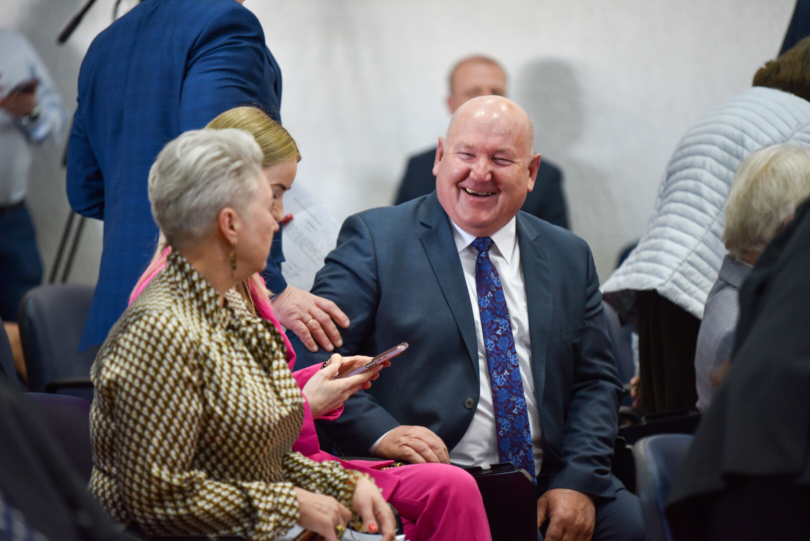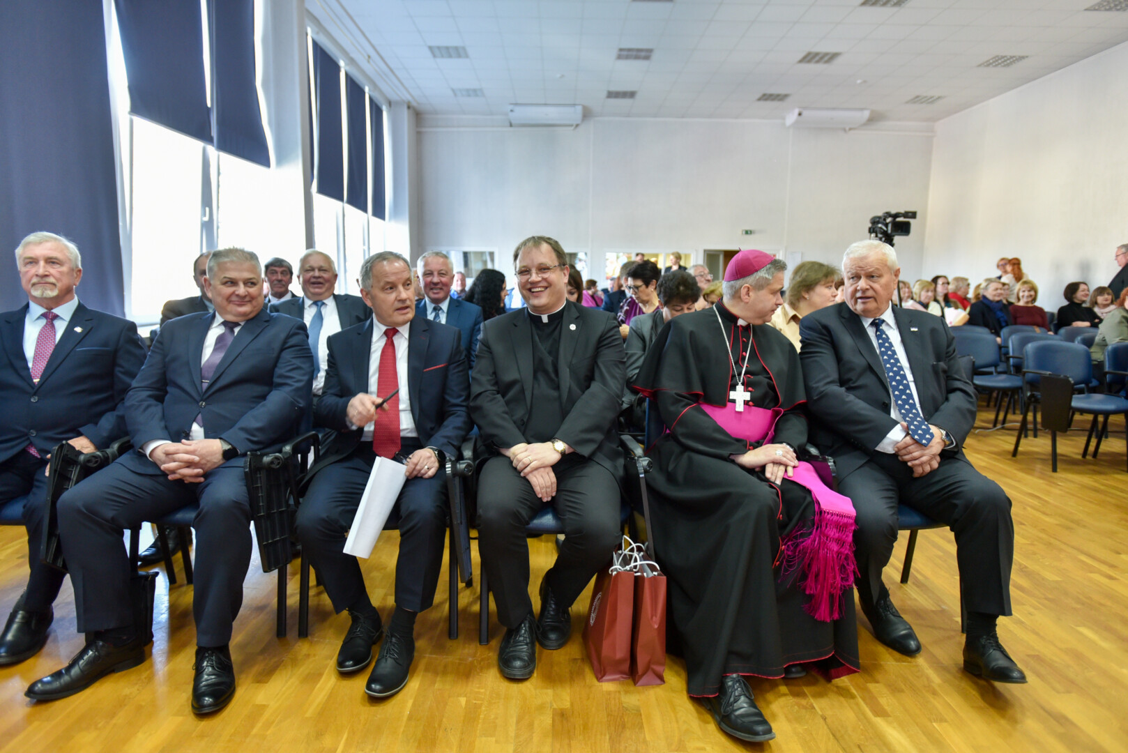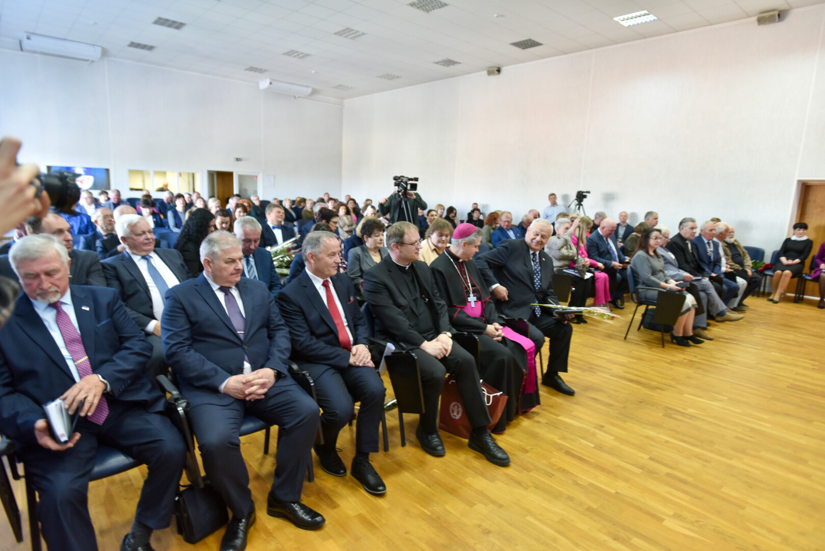 Į sveikintojų eilę rikiavosi Panevėžio prekybos, pramonės ir amatų rūmų atstovai, atkreipę dėmesį, kad liaudžiai reikia duonos ir žaidimų, buvusiam ir esamam merams įteikę garsių Panevėžio rajono kepėjų iš Radviliškių kaimo Audronės ir Albino Kisielių duonos, Panevėžio rajono garbės piliečiai, seniūnijų, švietimo ir kultūros įstaigų, Savivaldybės administracijos atstovai, politikai.