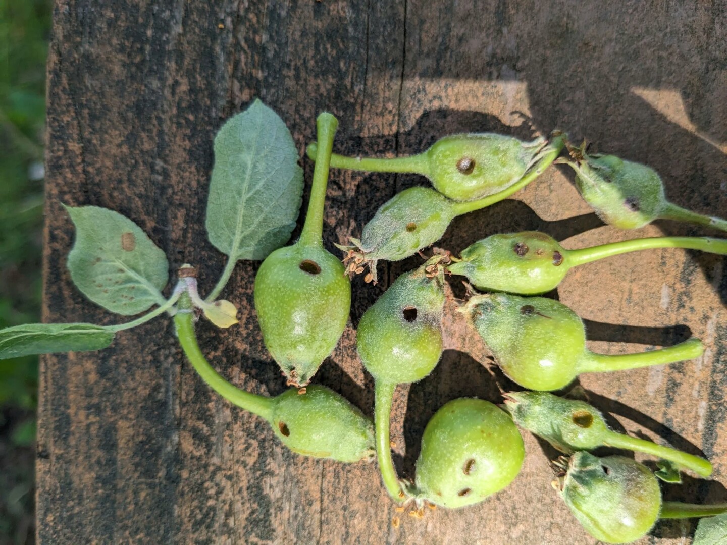 Dar vieno obuolių mėgėjo – obuolinio pjūklelio lervos prasiskverbia į jaunutes vaisių užuomazgas ir išėda iš vidaus. Jų pažeistus vaisius dažnai galima atpažinti iš tamsių dėmių, deformacijų. Arba iš to, kad jie tiesiog nubyra.