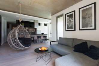 Betonas, medis, akmuo ir natūrali šviesa. Sukūrusi vieno buto šalies sostinėje interjerą,…