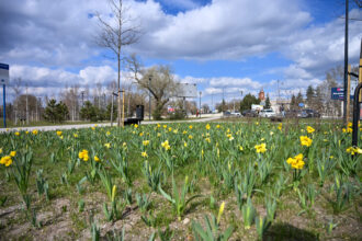 Panevėžys pradeda puošti miesto erdves pavasariniais žiedais. Betoniniuose vazonuose jau susodinti vėdrynai…
