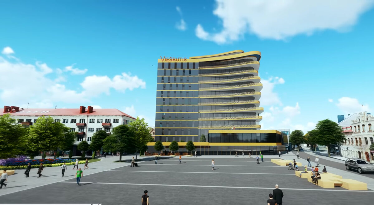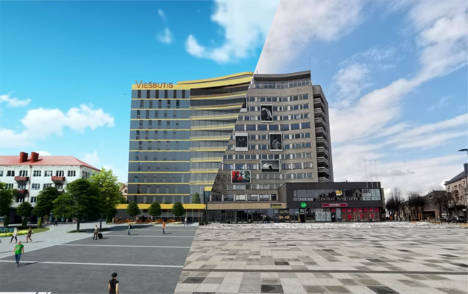 Ne prastesnė buvo sukurta ir dabar miesto centre vaiduoklio etiketę pelniusio, buvusio viešbučio „Panevėžys“ ateitis: šiuolaikinis fasadas, žalios poilsio terasos balkonuose, ant stogo apžvalgos aikštelė su iš dalies stikliniu grindiniu ir daug pastate besidžiaugiančių žmonių – taip architektai įsivaizdavo šį statinį po dešimtmečio.