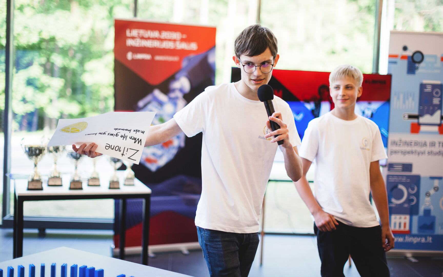 Vilniuje praūžusiame nacionalinio jaunųjų inžinierių čempionato finale triumfavo Panevėžio robotikos centro „RoboLabas“ auklėtiniai Modestas Raila ir Ignas Cimnolonskas. Šie išradėjai varžėsi 5–8 klasių grupėje.