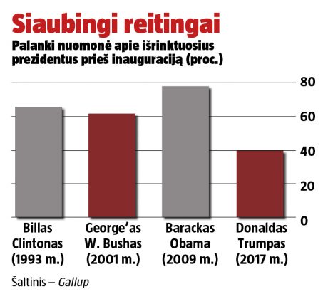 Į Baltuosius rūmus jis žengia kaip pats nepopuliariausias naujas pastarųjų laikų prezidentas.