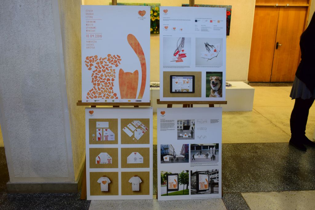 Dailės galerijoje galima apžiūrėti ir 16 studentų sukurtų Panevėžio miesto prekinio ženklo variantų.