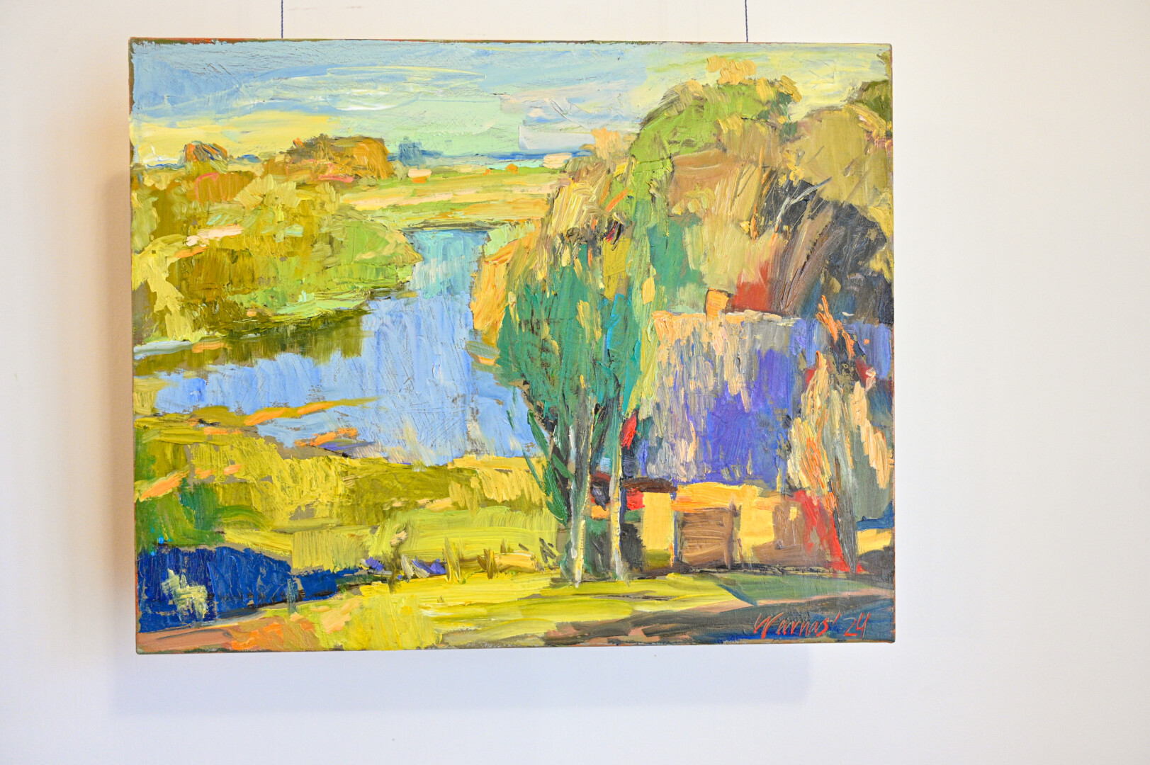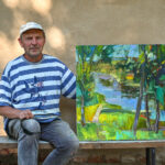 Pats jis pasakoja daugybę kartų tapęs upių tėvą Nemuną, o dabar plenere jį patraukė Nevėžio upės vaizdai.