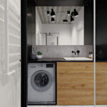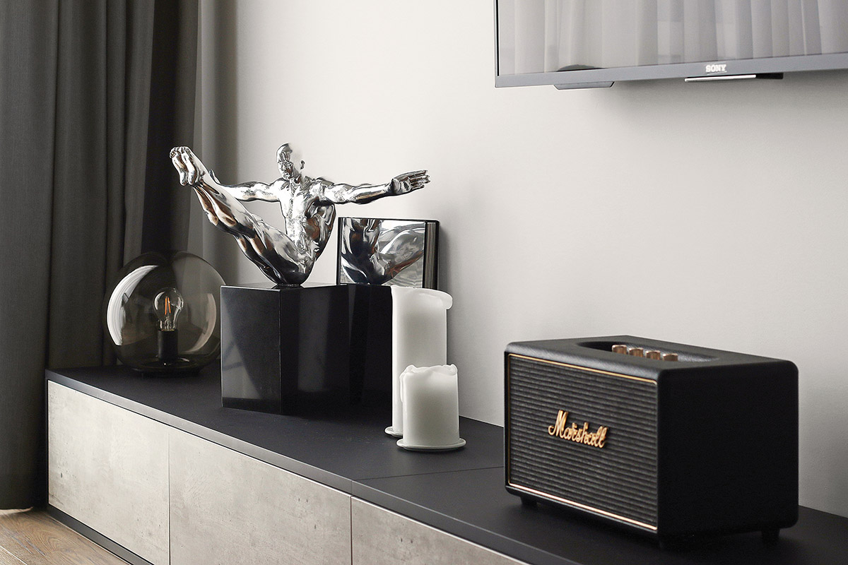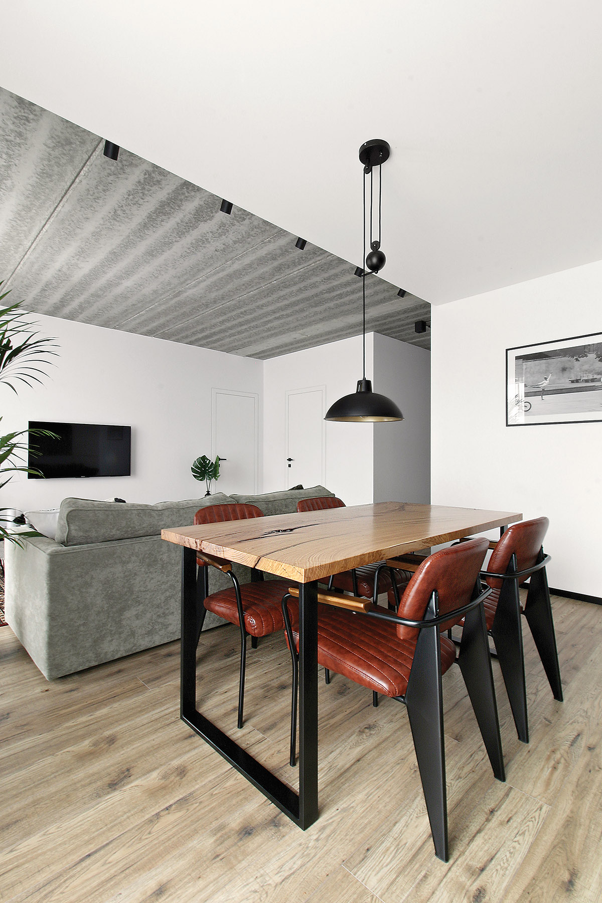 Didžiausią prioritetą kurdama šį interjerą G. M. Pranckutė teikė funkcionalumui, estetikai ir vizualiai švarai: „Užsakovė pageidavimo suprojektuoti erdves taip, kad nebūtų atvirų ir nefunkcionalių lentynų, kurias „iš reikalo“ reikėtų kuo nors užpildyti.“ Virtuvėje lygiai su viršutinėmis spintelėmis ji suprojektavo aukštą baldą, kuris neapsunkina erdvės ir talpina būtiniausius buities reikmenis.