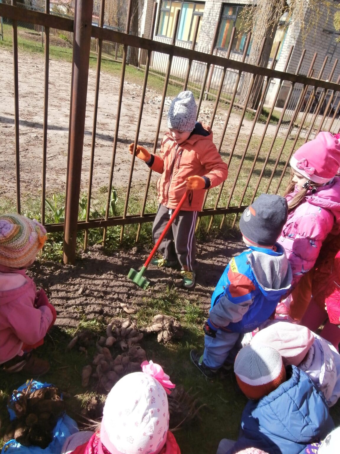 Dalis grupės vaikų tėvų atnešė senovinių bei dekoratyvinių jurginų gumbų. Jurginių rytą į kiemsargio Rolando išpurentą, kaip senovėje – prie tvoros žemę „Rūtelių“ grupės tėveliai jurginus pasodino, vaikai juos palaistė. Į akciją įsijungė „Drugelių“, „Kiškių“, „Boružėlių“ grupių auklėtojos, tėveliai bei kiti įstaigos bendruomenės nariai.