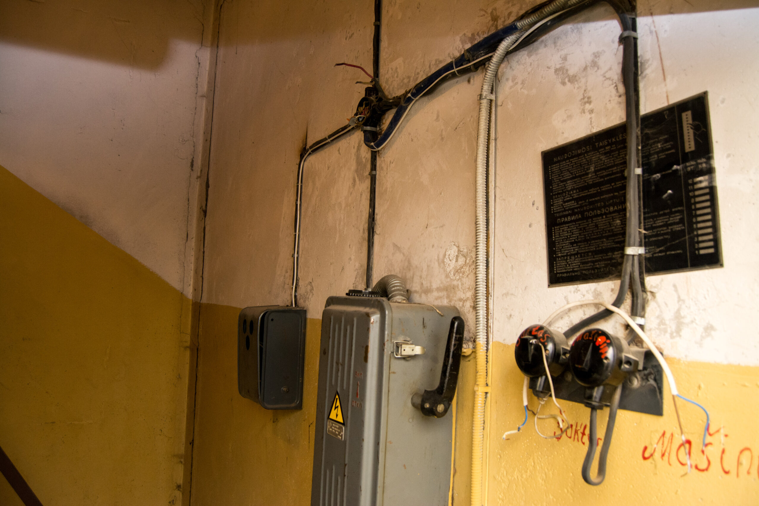 Nemaloni istorija prasidėjo prieš porą metų, kai keičiant devynaukščio daugiabučio langus namo pirmininkas Kazimieras Grybė šalia lifto šachtos pastebėjo didžiulį elektrą naudojantį prietaisą.