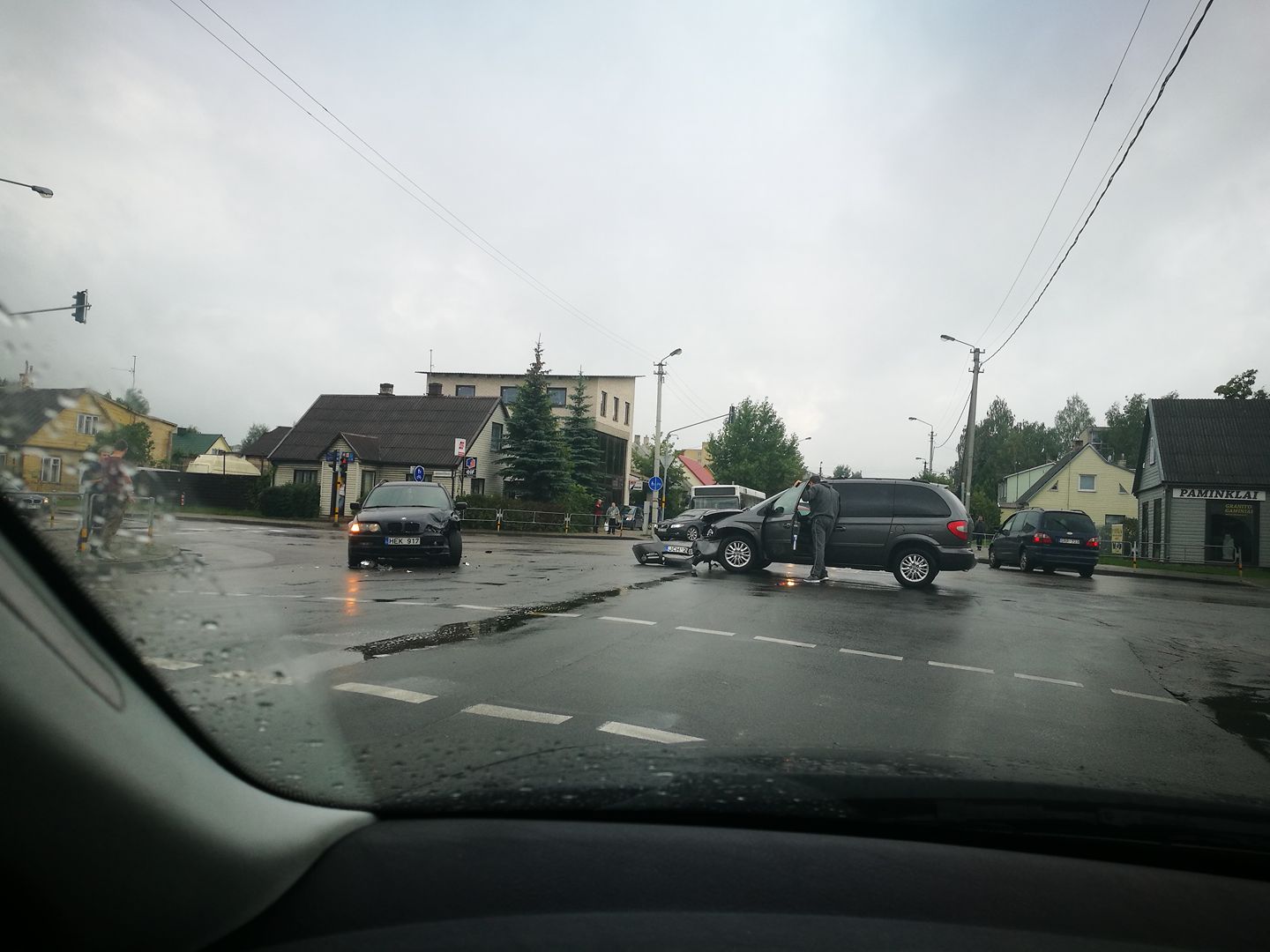 Po 16 val. J. Basanavičiaus-Aukštaičių sankryžoje susidūrė lengvieji automobiliai BMW ir „Chrysler“.