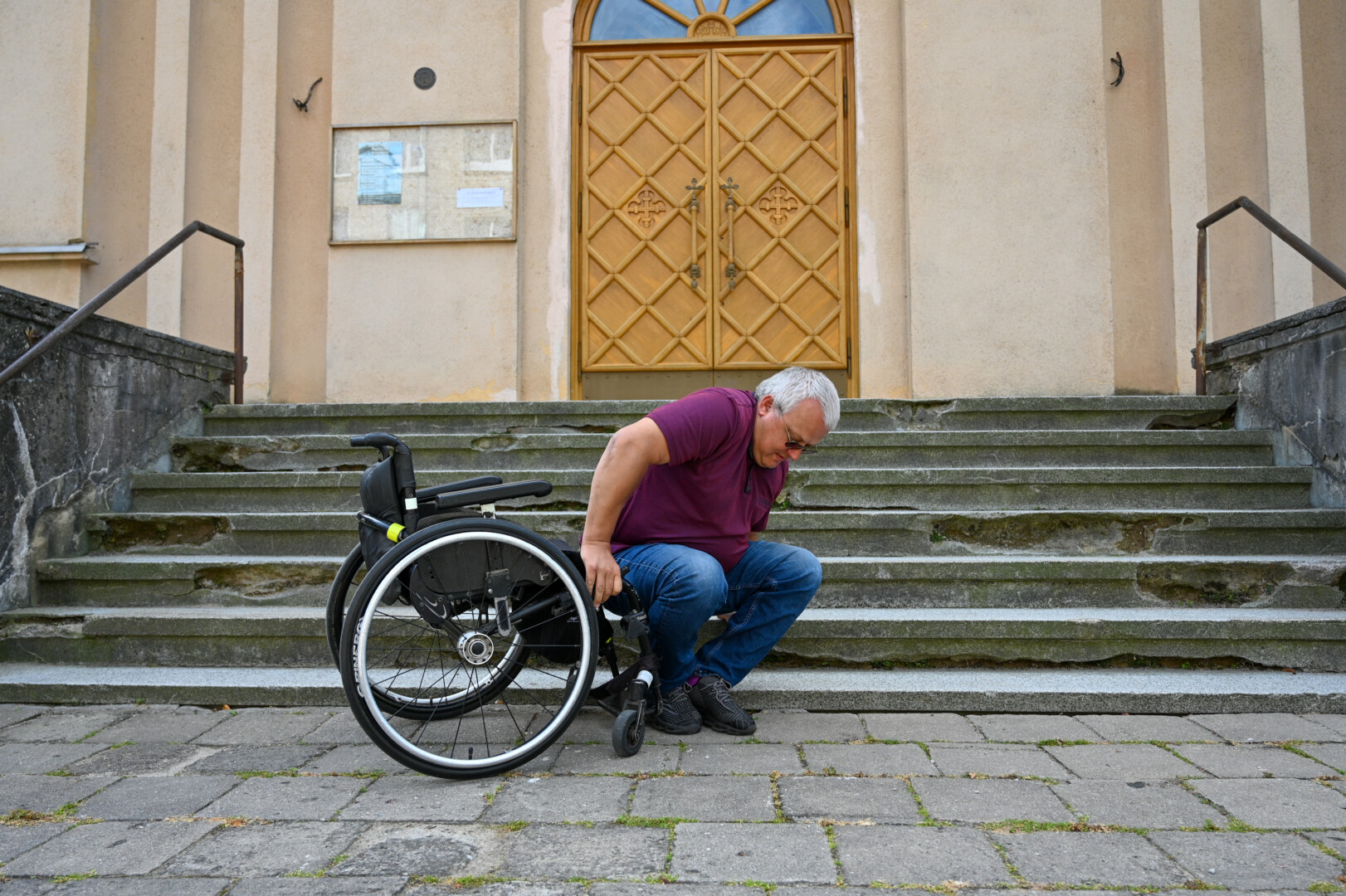 „Kodėl į koplyčią man reiktų eiti aplinkiniu keliu, dargi labirintais, kai yra tiesus kelias, tik reikia įrengti pandusą?“ – klausia žmonių su negalia sąjungos Panevėžyje vadovas.