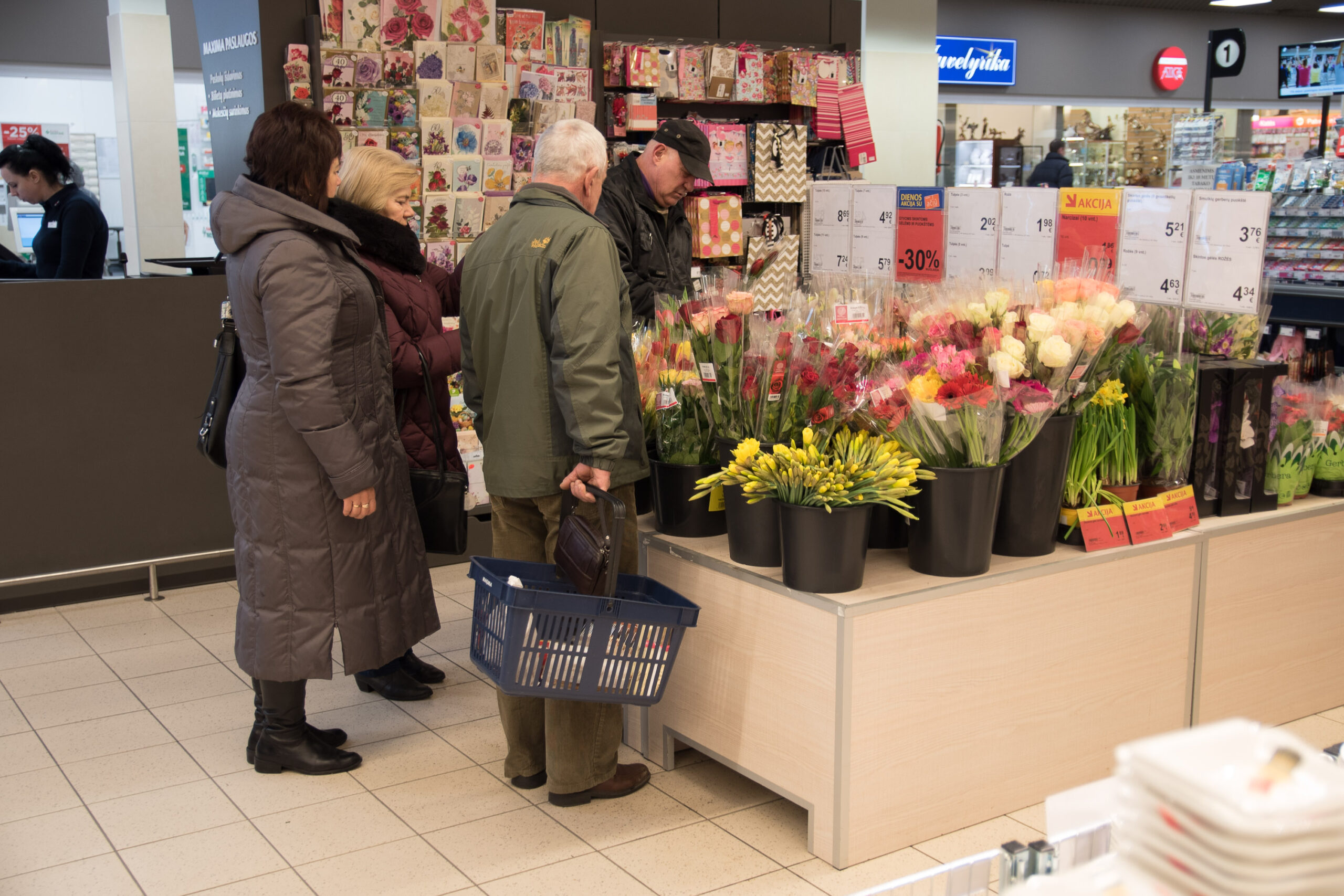 Tarptautinės moters dienos proga nuo pat ankstaus ryto gėlių skubėjo ieškoti ne tik vyrai, bet ir moterys. Laikydami įvairiaspalvius tulpių žiedus pirkėjai tvirtino, kad pinigų negaili net brangiausioms gėlėms.