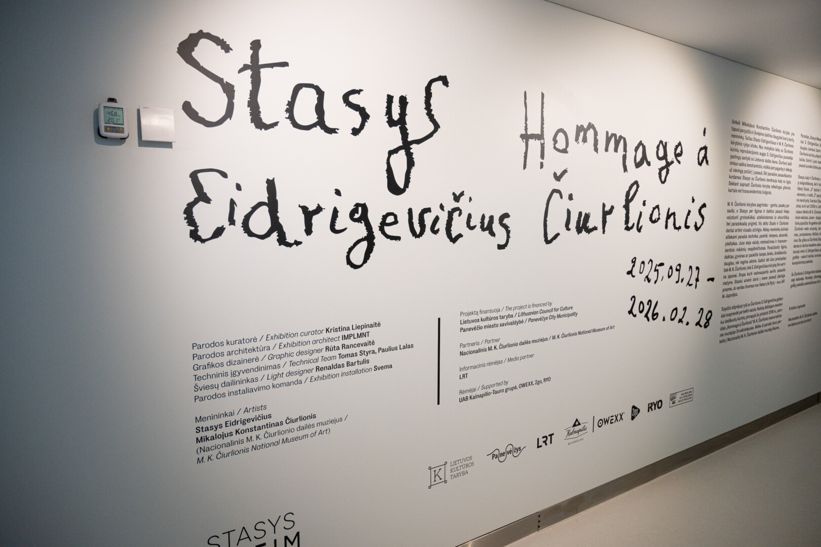„Abu šie menininkai iš kito pasaulio. Jų kūryba nėra panaši nei tematika, nei stiliumi, bet tarsi abu iš viršaus stebi, kas vyksta. Galima pro jų darbus praeiti labai greitai, bet jei sustoji, eini į gylį ir supranti, kad ten nėra pavaizduota tai, ką iš karto pamatei plika akimi, o daug giliau. S. Eidrigevičių ir M. K. Čiurlionį vienija transcendentinis matymas“, – sako kuratorė.