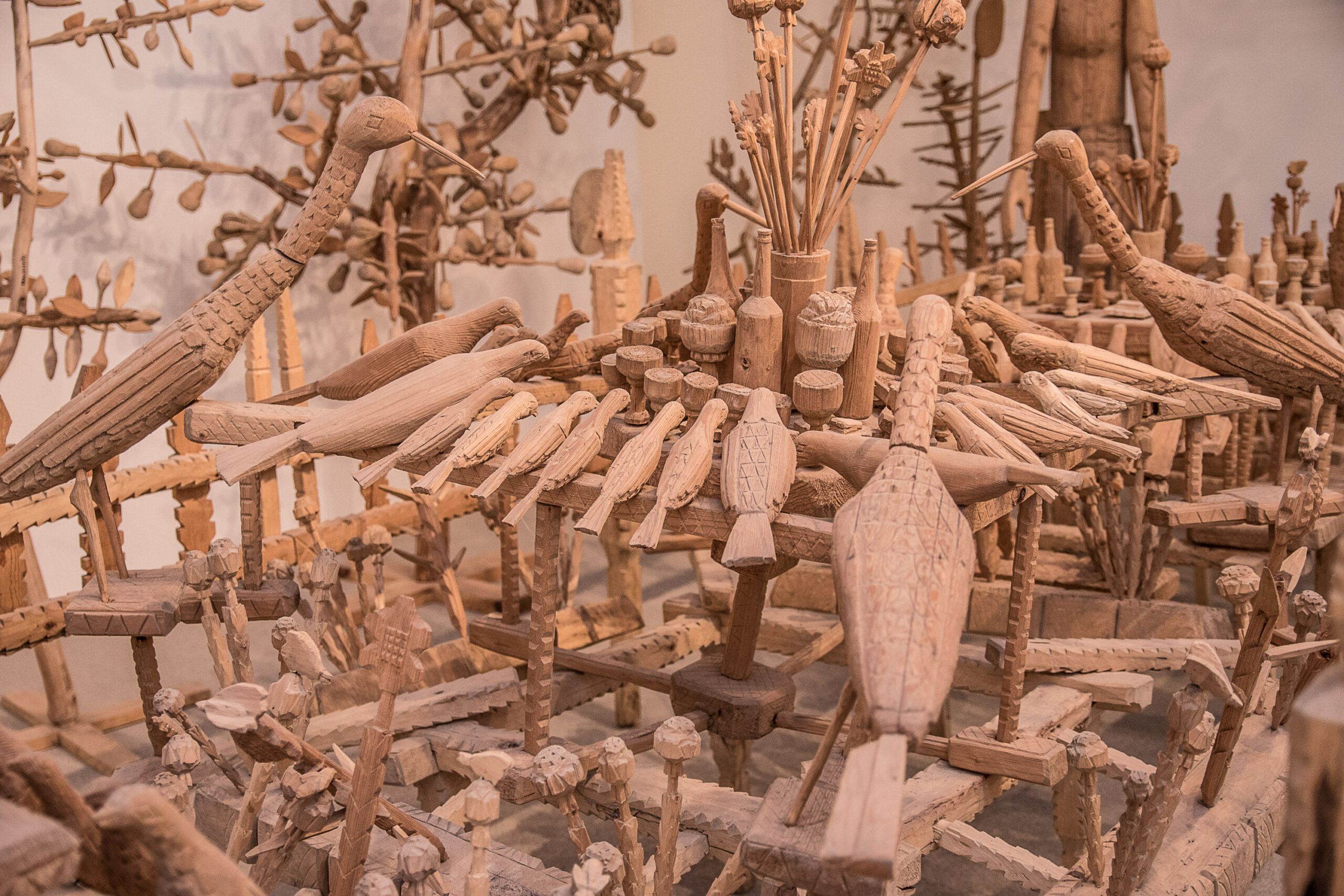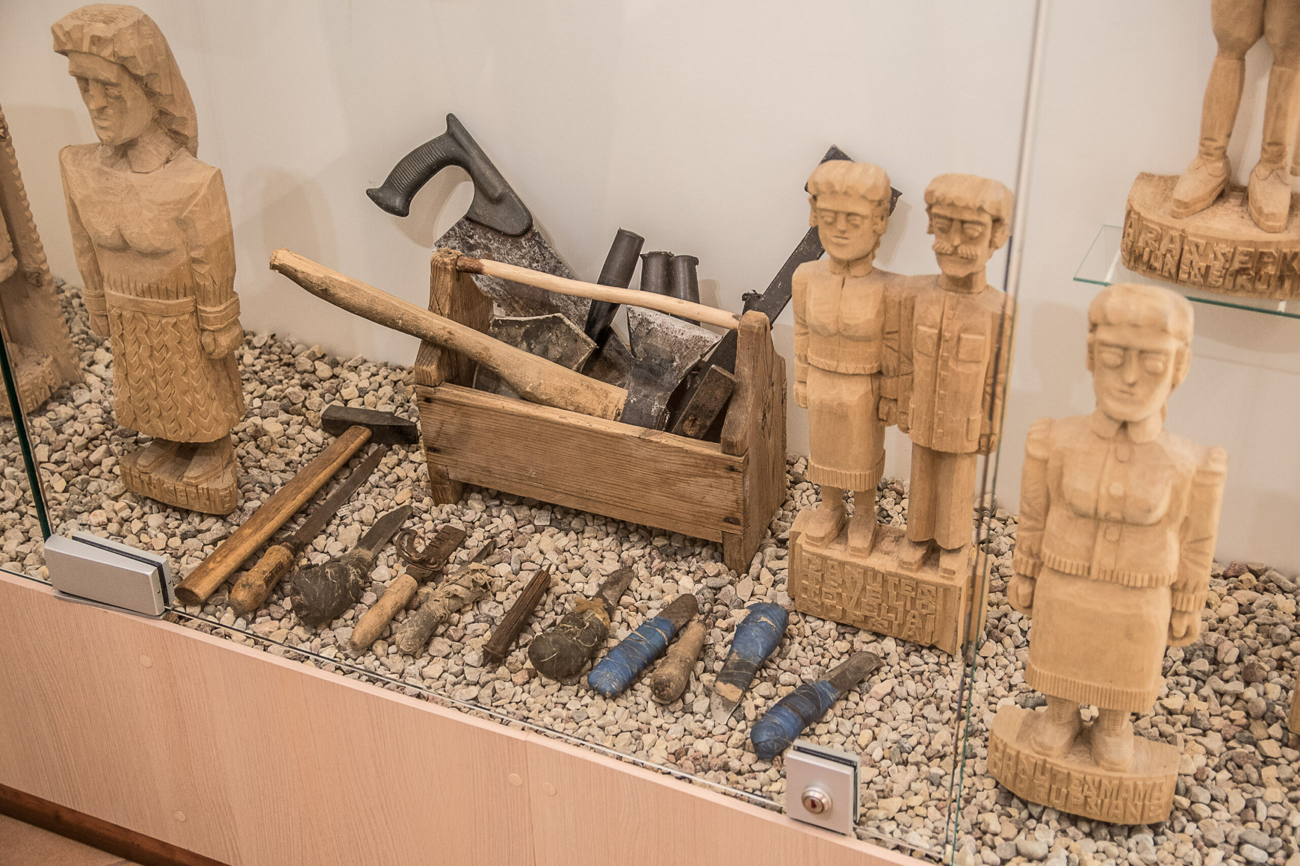 Jokių įmantrių priemonių, įrengimų – pagrindinis drožėjo darbo įrankis buvo aštrus peiliukas.