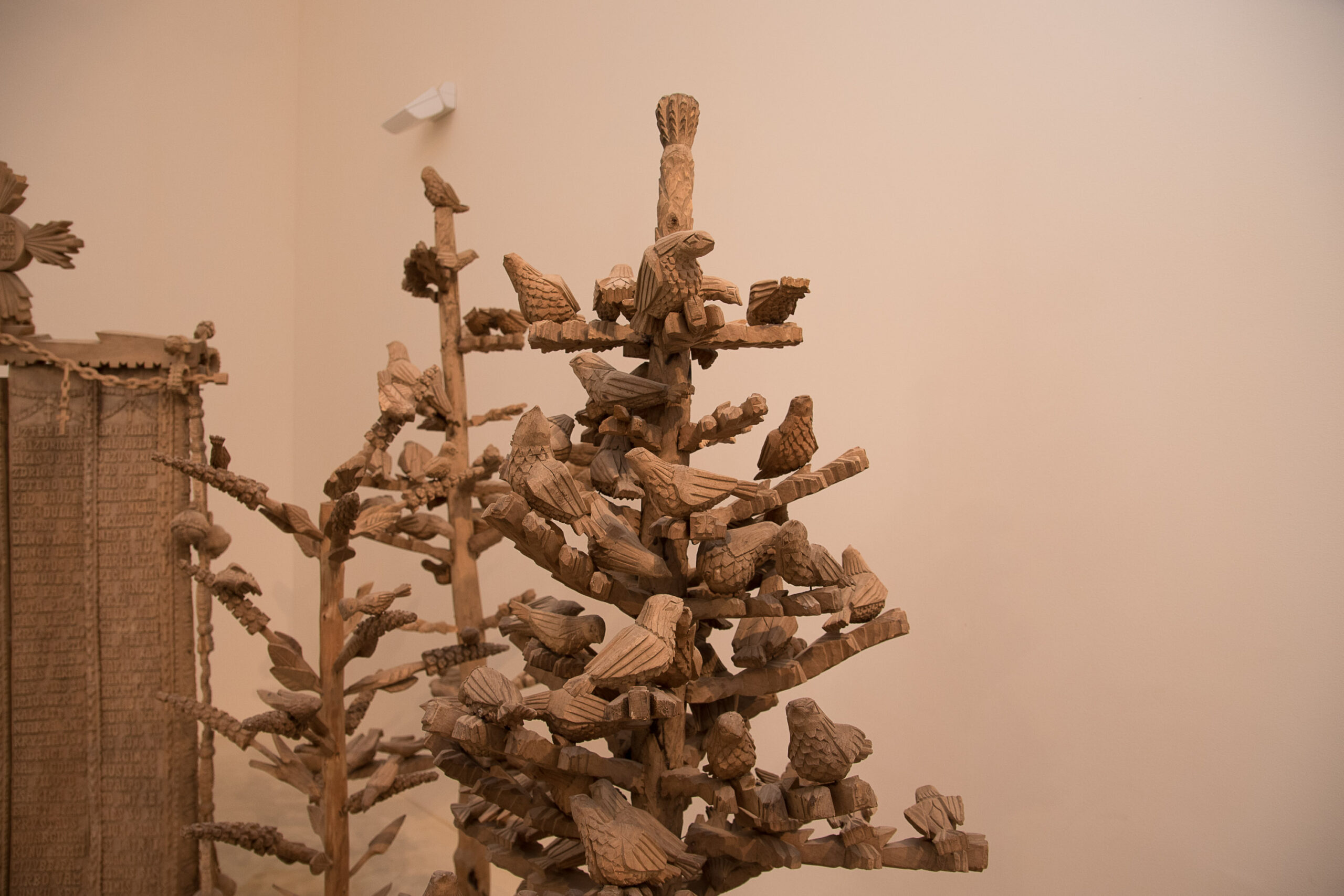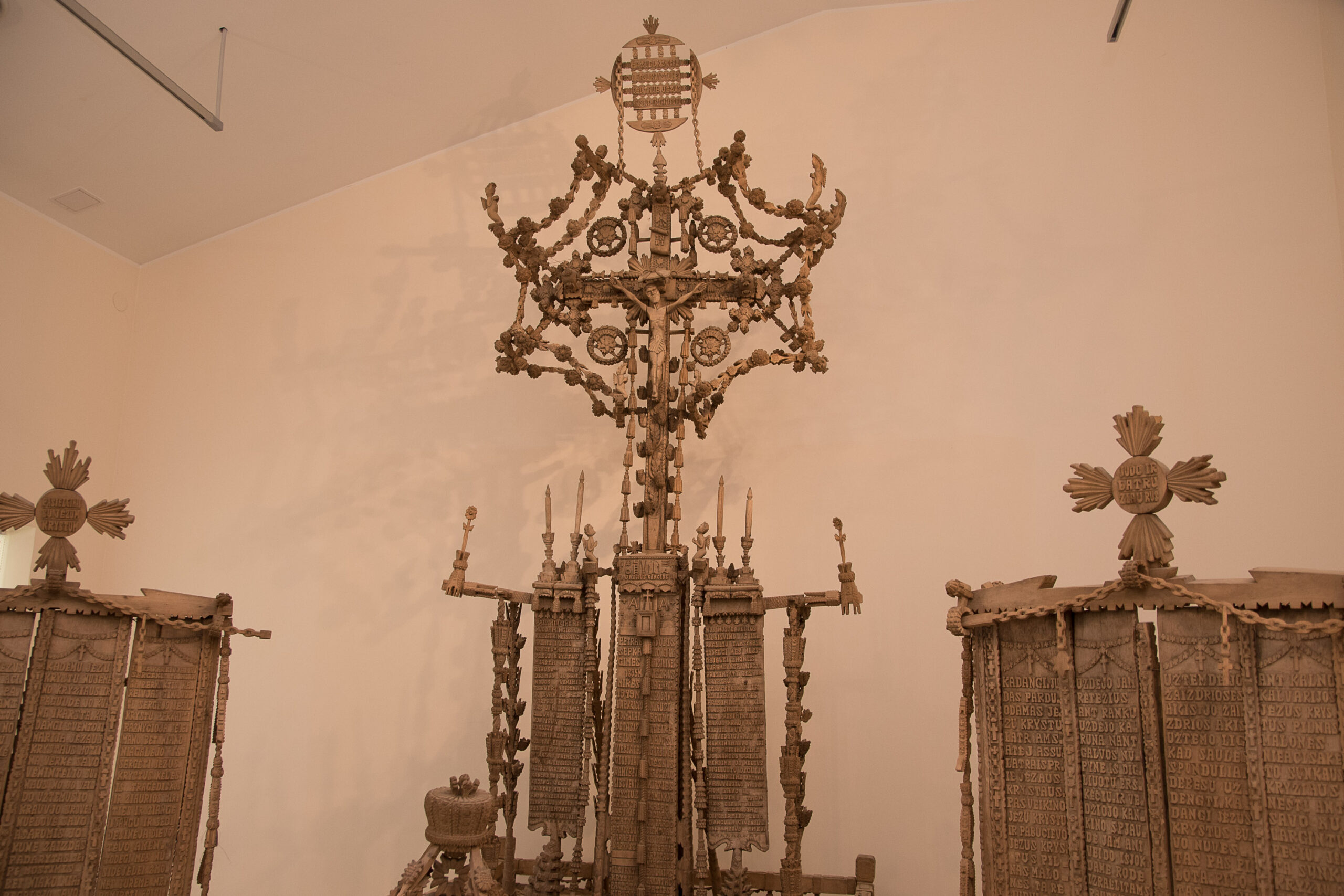 Bene įspūdingiausias, neįprasčiausias kūrinys – iš daugelio dalių susidedantis paminklas, skirtas broliui Petrui, eksponuojamas pirmojoje salėje. Žvilgsnis tiesiog pasiklysta tarp daugybės detalių – čia ne tik kryžius, bet ir daugybė gėlių, vainikų, figūrėlių, spindulių, paukščių, grandinių, išdrožinėtų, ornamentais virstančių tekstų. Tokį paminklą vargu ar dar kur nors teko regėti.