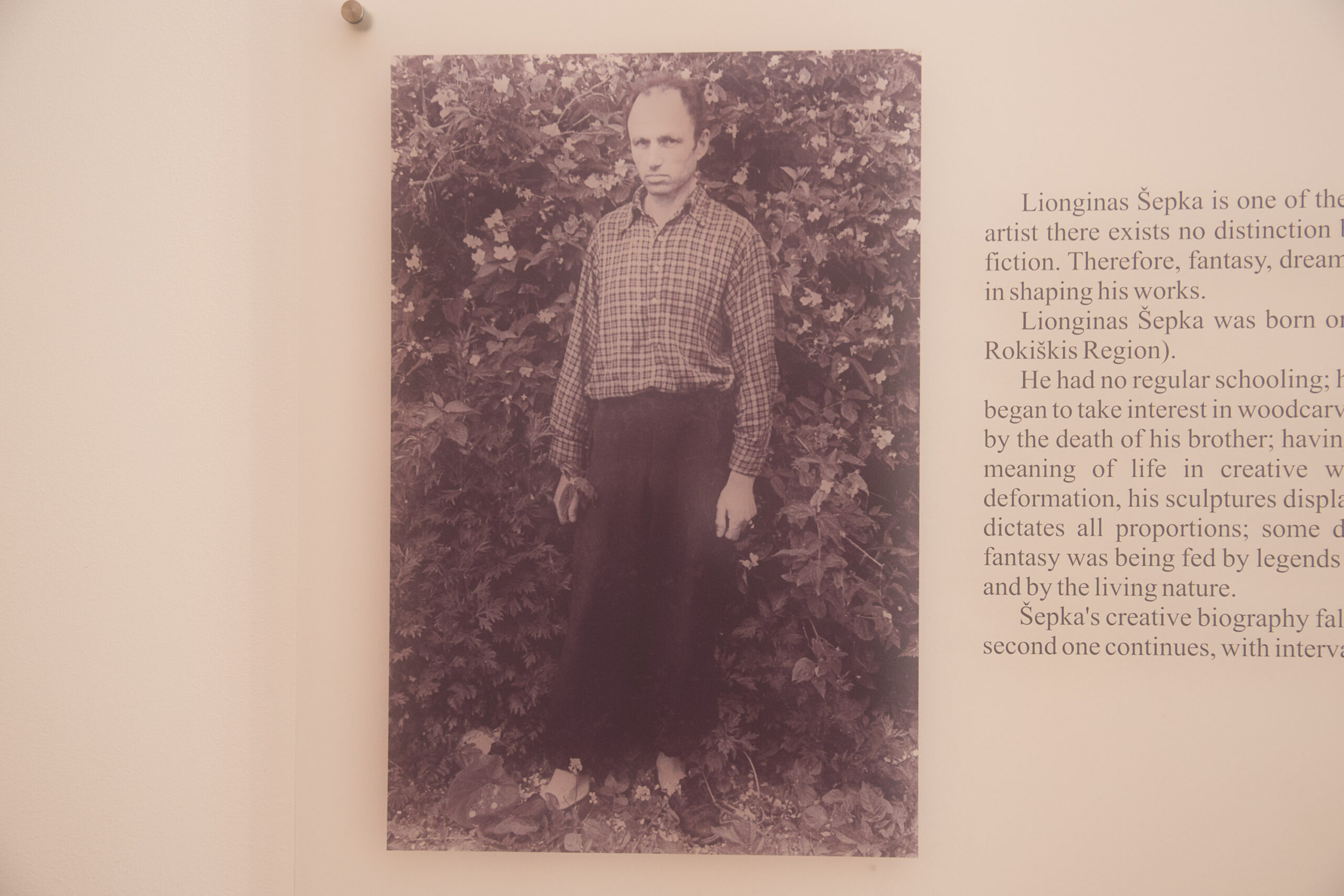 Apie dailininko Vytauto Ciplijausko pirmąjį susitikimą su drožėju pasakojama Zitos Žemaitytės knygoje „Lionginas Šepka“: „Pandėliečiai pasakė, kad čia gyvena toks laukinis. Nuėjom ir apstulbom. Milžinišką įspūdį padarė toks keistas, nematytas pasaulis. Žeminė apaugusi kiečiais, dilgėlėm, vietoj durų – varteliai, pinti iš karčių. Beldžiu į stulpą. Tarpdury pasirodo žmogus, apsivilkęs miline, ant skvarbių akių užsmaukta kepurė, žengia nepatikliai, kalbinamas iš pradžių neatsako nė žodžio. Užsirūko pasiūlytą papirosą. Pamažu prasidėjo pokalbis. Įeinam pro vartelius į prieangį. Čia viena ant kitų sukrautos nuostabiausios, nepaprastai originalios ir išraiškingos skulptūros, paukščiai, giedantys medžių šakose, ornamentuotos lentos su puikiai įkomponuotais tekstais. Iš karto krito į akį be galo organiškas monumentalių skulptūrinių formų ir turtingos ornamentikos ryšys.“