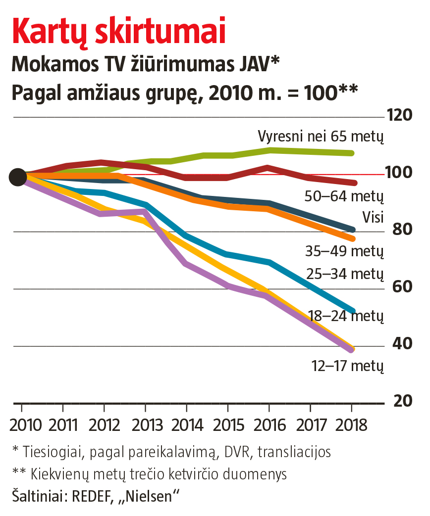 Yra dvi priežastys, kodėl „Disney“ ir AT&T artimiausiu metu nusiteikusios paaukoti pelną: tai pažeidžiamas pagrindinis verslas ir tikėtina grąža iš srautinių paslaugų. Populiarėjant „Netflix“, „YouTube“ ir kitoms internetinėms dėmesį prikaustančioms paslaugoms, amerikiečiai žiūri mažiau mokamos TV (žr. grafiką) ir atsisako brangių AT&T siūlomų paketų, apimančių ir „Disney“ TV kanalus. Kino teatrų lankomumas taip pat sumažėjo. Būtent dėl to Rupertas Murdochas norėjo parduoti didumą „Fox“ imperijos, o Jeffas Bewkesas veržėsi atsikratyti „Time Warner“. Kai kanalai neturės „trokštamo“ turinio, platintojai reikalaus nuleisti kainas. Daug hitų turinčios „Fox“ ir „Time Warner“ studijos ir pramogų tinklai „Disney“ ir AT&T akyse buvo vertingas turtas.