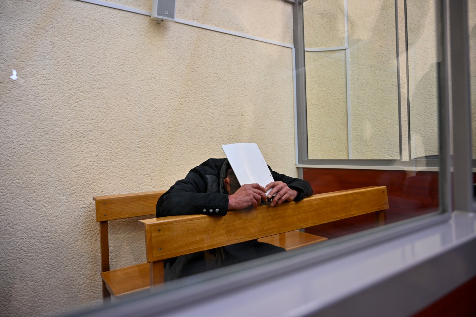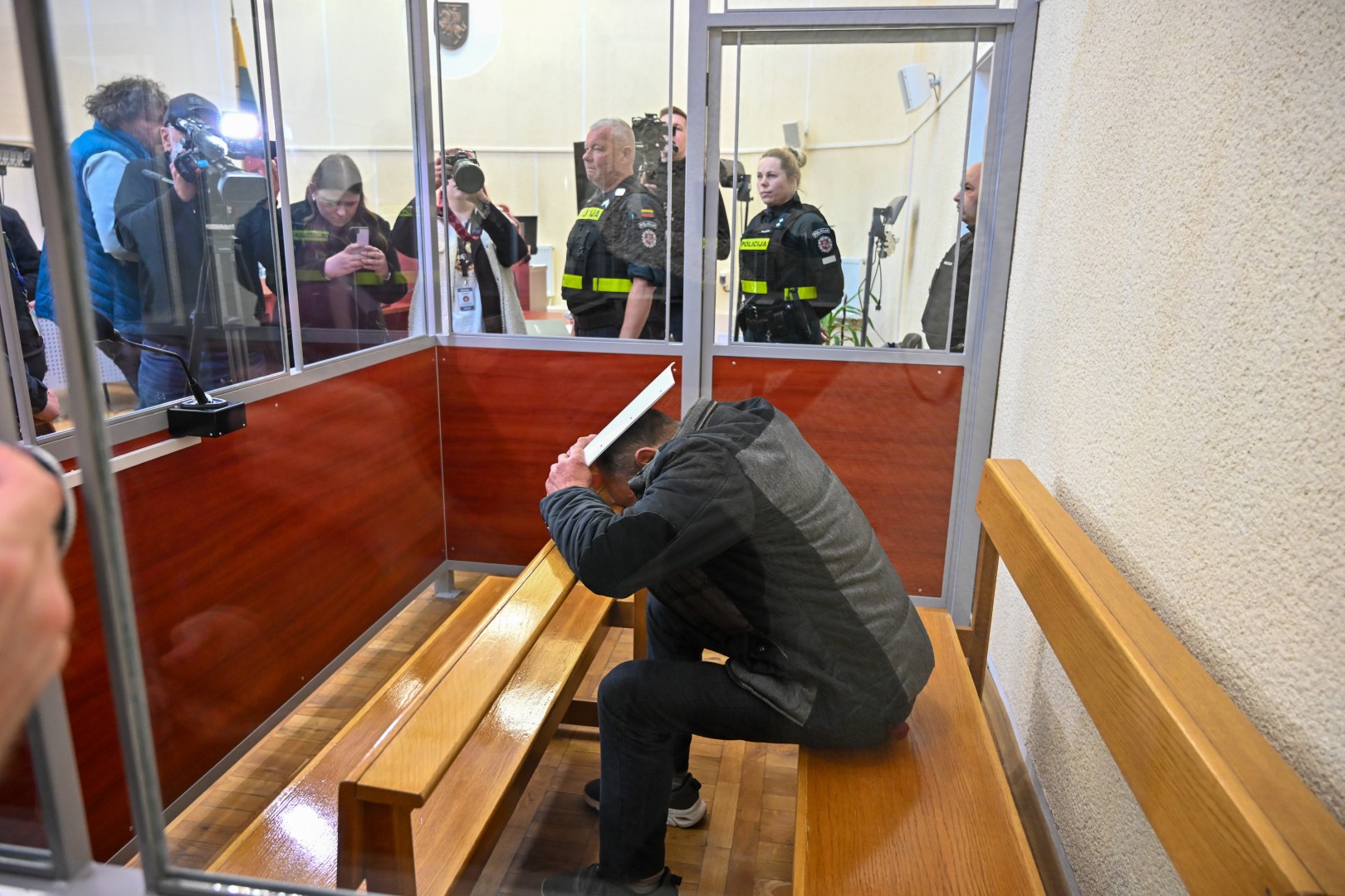Vyras, įtariamas klaikiai nužudęs paramediką, teisme nuo visuomenės akių slapstėsi kaip tik išmanė – galvą slėpė po gobtuvu, veidą dengėsi dokumentais – popieriaus lapais su surašytais įtarimais.