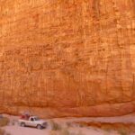 O šis nenuvilia. Rausvi, rudi, smėliniai, pilkšvi, rožiniai uolienojai, degantys vario atspalviais, blykštantys saulės šviesoje ar niūriai brendantys į vakarėjančius šešėlius – tai tik bergždžias bandymas apibūdinti tai, kas neapibūdinama. Uolienų spalvos, formos, faktūros mainosi sulig kiekvienu puskilometriu. Raudonas dykumos smėlis irgi kas kelis šimtus žingsnių keičia savo pavidalą: čia sparčiai žengi kietai suplūktu paviršiumi, čia lėtai klampoji biraus smėlio ruožu. Vaizdingiausios uolos, jų barokinėse formose paslėpti senoviniai rašmenys ar vos įžiūrima srove čiurlenantys vandens šaltiniai priverčia dar ir gerokai pakopti aukštyn. Kaip ir didžiulė kopa, į kurią užsiropščiu tik dukart nusiavusi batus ir išpurčiusi saujas smėlio. Jau sėdėdama viršuje stebiu ne tik kvapą gniaužiantį peizažą, bet ir kopos apačioje likusią pasipuošusią moterį, besifilmuojančią vaizdo klipui, ir kelis dykumą raižančius visureigius.