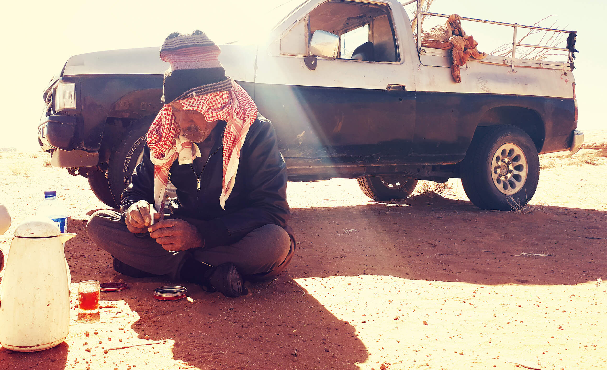 Iki šiol nežinau, kuo paaiškinti tokias mus lydėjusio gido staigmenas – asmeninėmis savybėmis ar kultūriniais skirtumais. Bet tai ir nebuvo svarbu. Vieno keistenybes ar neprofesionalumą visiškai kompensavo kiti – nuoširdūs, smalsūs, geranoriški vietiniai. Stovyklavietės steigėjai neslėpė iš dykumos išvykstantys „tik kai labai reikia“, o Europoje niekada nebuvę ir bent artimiausiu metu ten vykti neplanuojantys. „Mes čia, dykumoje, sutinkame visą pasaulį“, – mostelėjo jie. Keletą kartų pasirodė, kad didžiosios Jordanijos žvaigždės – Petros – kaimynystė jiems kiek įkyrėjusi. Beduinai vis išdidžiai pakartodavo, kad daugėja žmonių, kurie į jų šalį pirmiausia atvyksta ne dėl Petros, bet dėl dykumos. Japonų, amerikiečių turistus čia traukia ir galimybė užsiimti ekstremaliu sportu: žygiuojant teko matyti keletą informacinių lentų, įspėjančių, kad kopiantys uolomis ar skraidantys parasparniais patys atsako už savo saugumą.