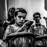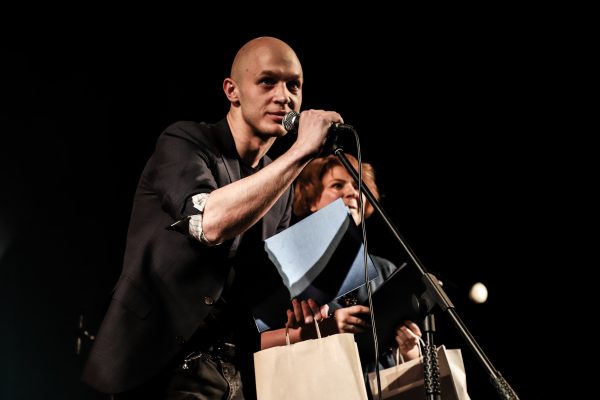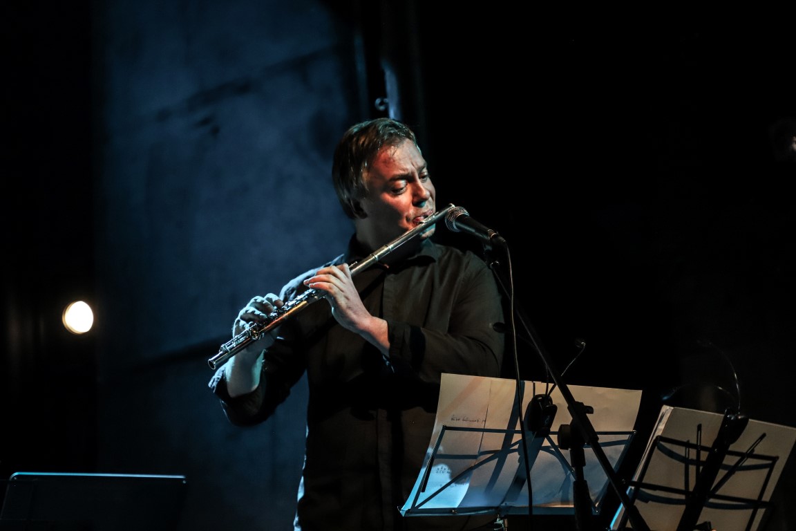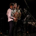 Scenoje džiazavo ne tik mokiniai ir jų mokytojai. Prie programos prisijungė ir teatro aktoriai bei dailininkas, scenografas, fotografas Arvydas Gudas. Jis, skambant džiazo melodijoms, kūrė paveikslą, kurį paviešino renginio pabaigoje.