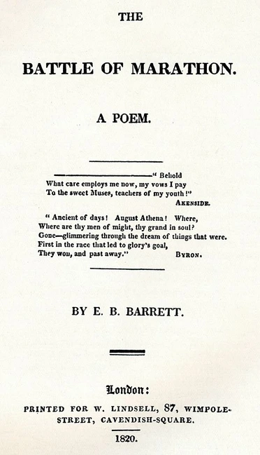 Elizabetos tėvas, nepaisant griežtumo, ankstyvaisiais metais skatino jos intelektinį augimą ir net privačiai išleido dvylikametės dukters pirmąjį kūrinį – epinę poemą „Maratono mūšis“.