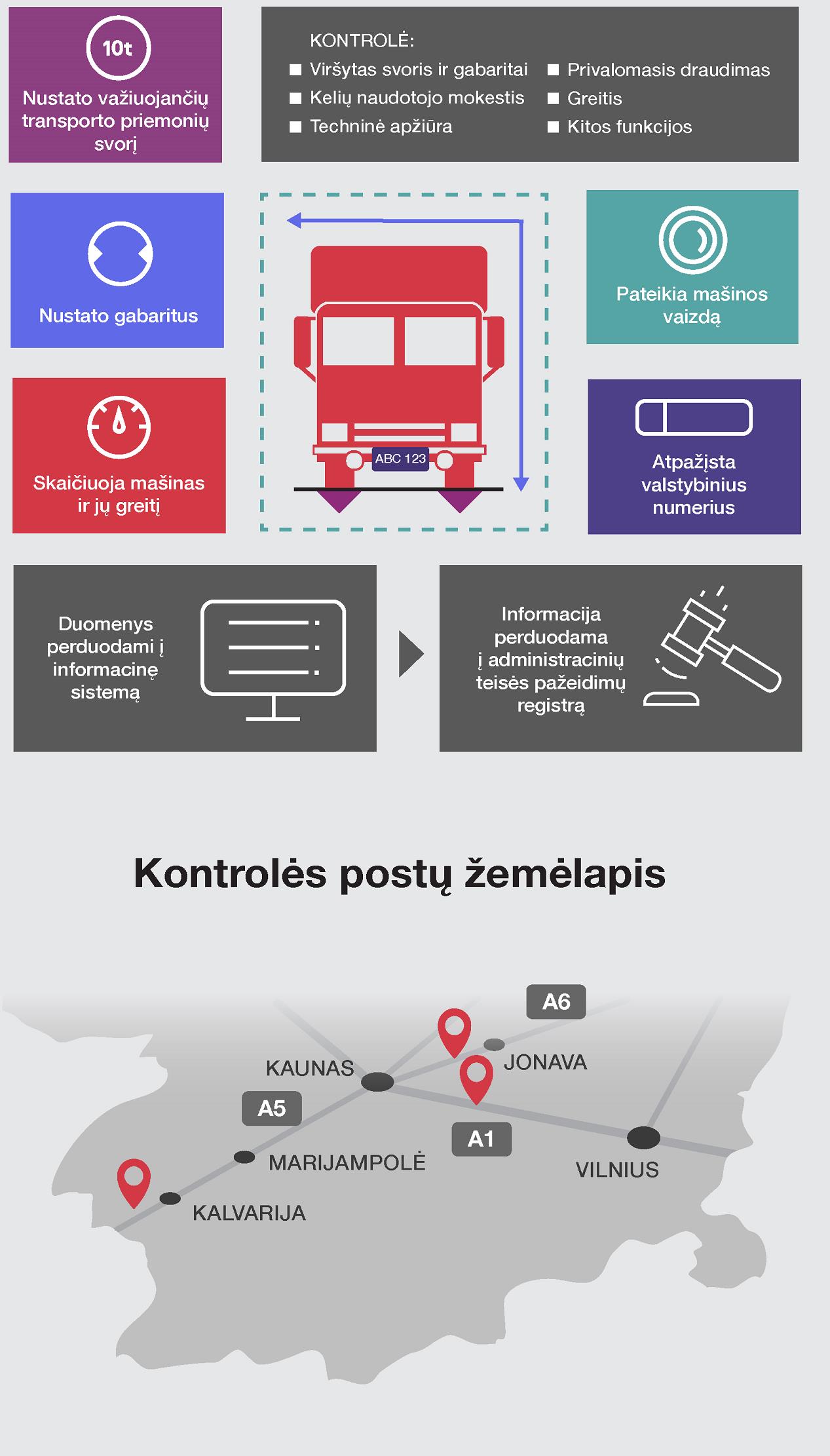 Pagrindiniuose šalies keliuose pradedama diegti bandomoji daugiafunkcė pažeidimų kontrolės sistema. Magistralinio kelio A6 ruože tarp Karmėlavos ir Jonavos darbininkai pradedama montuoti unikali įranga, galinti pasverti įprastu greičiu važiuojančius automobilius.
