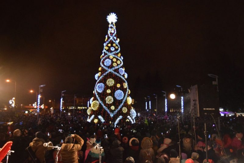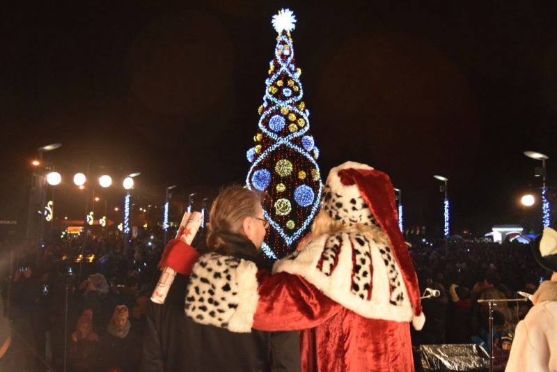 Šiais metais miesto centras pasipuošė netradiciškai ir pažėrė didžiulių staigmenų. Pirmasis netikėtumas, kad eglę dovanojo ne gyventojai, o verslininkai. Prekybos, pramonės ir amatų rūmai subūrė bendraminčius, kurie ne tik įteikė eglę, bet ir pasirūpino jos papuošimu.