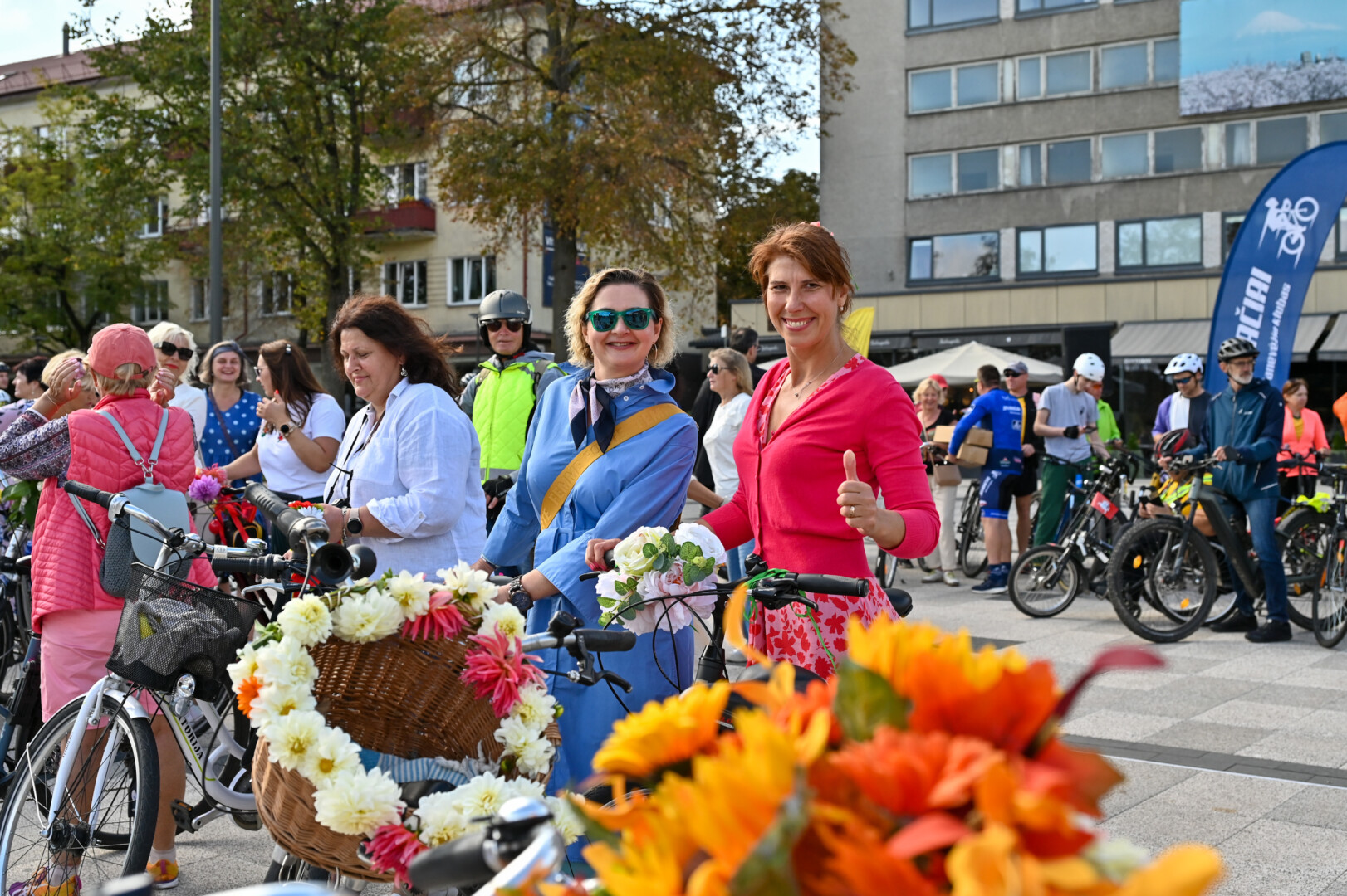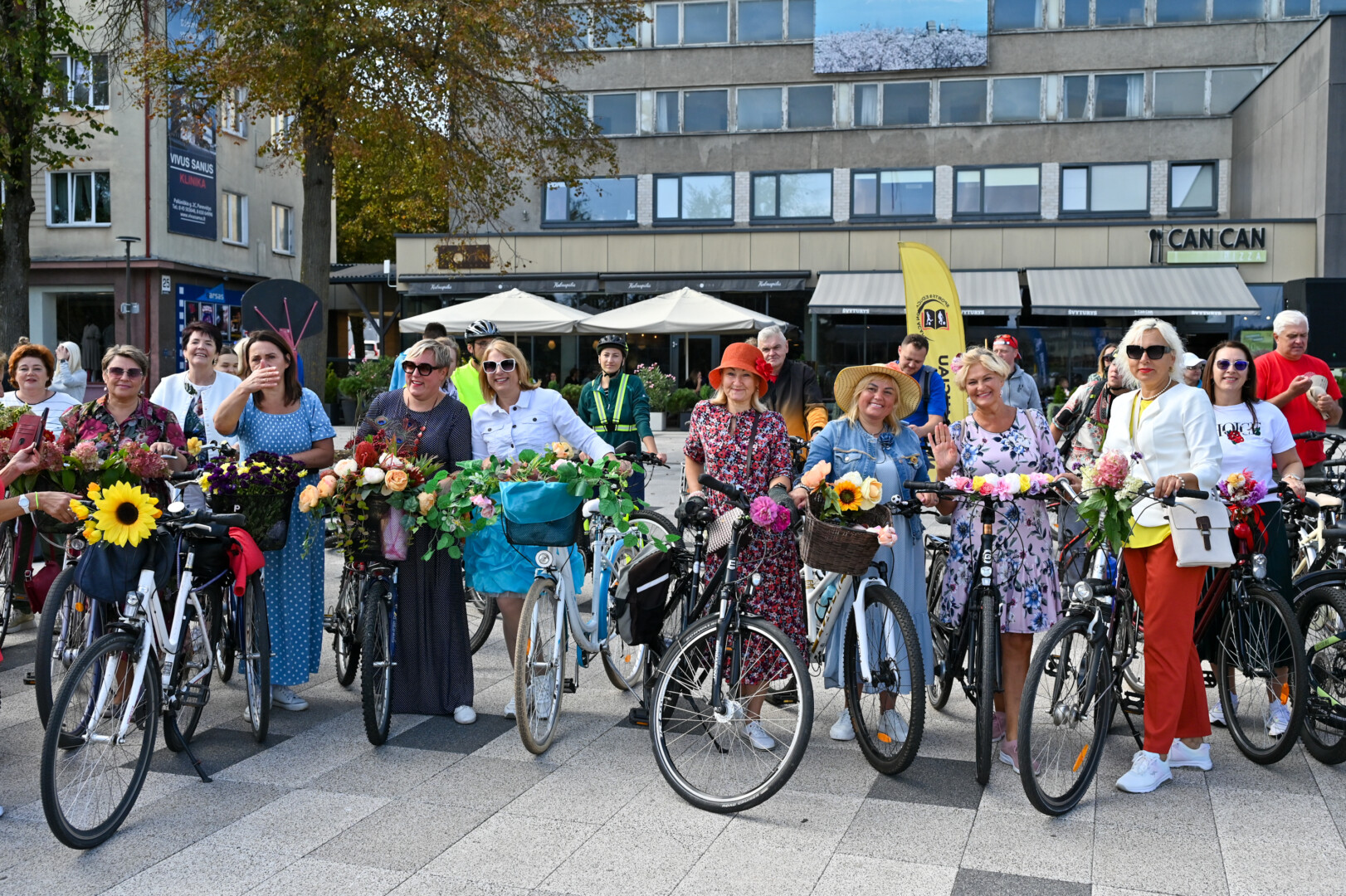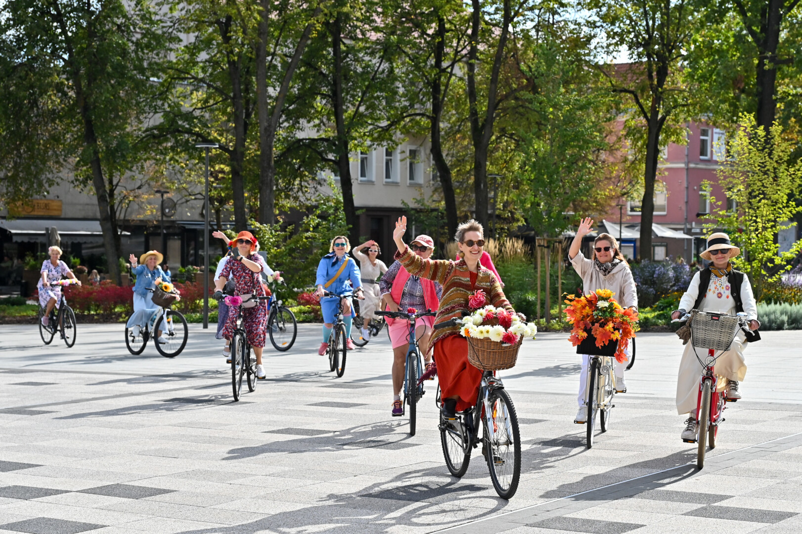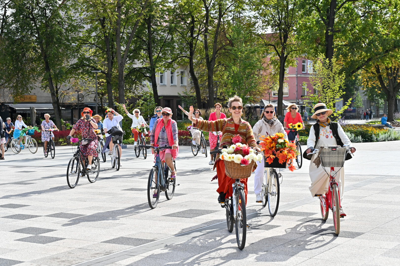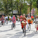 Minint Tarptautinę dieną be automobilio bei Europos judumo savaitę, Panevėžio gatves sekmadienį užtvindė elegantiškos, pasipuošusios moterys ant gėlėmis puoštų dviračių.