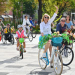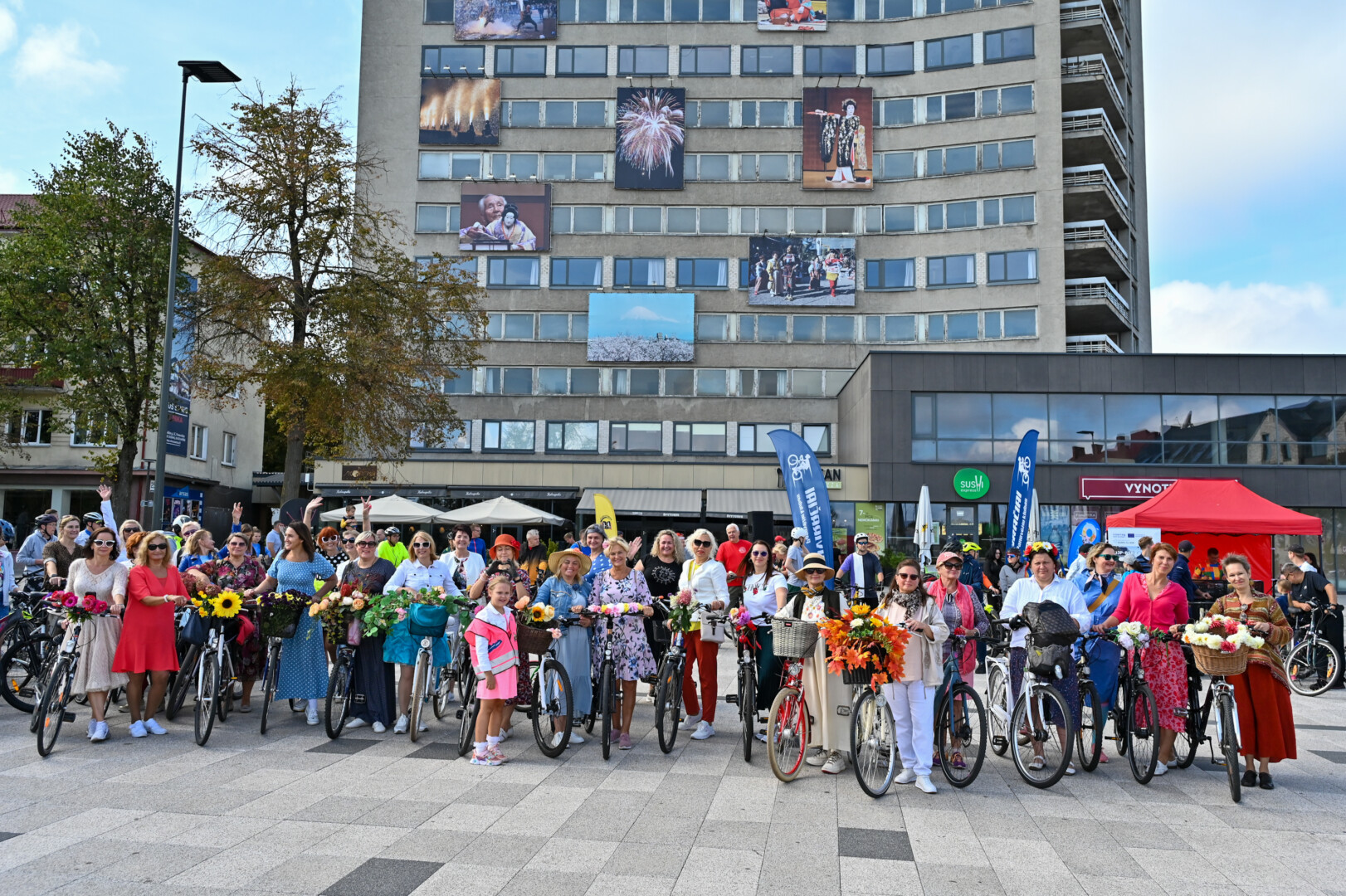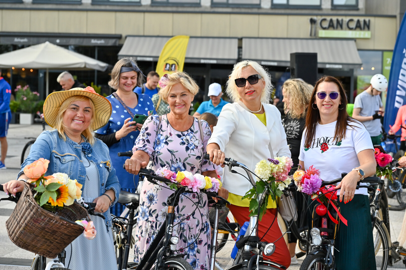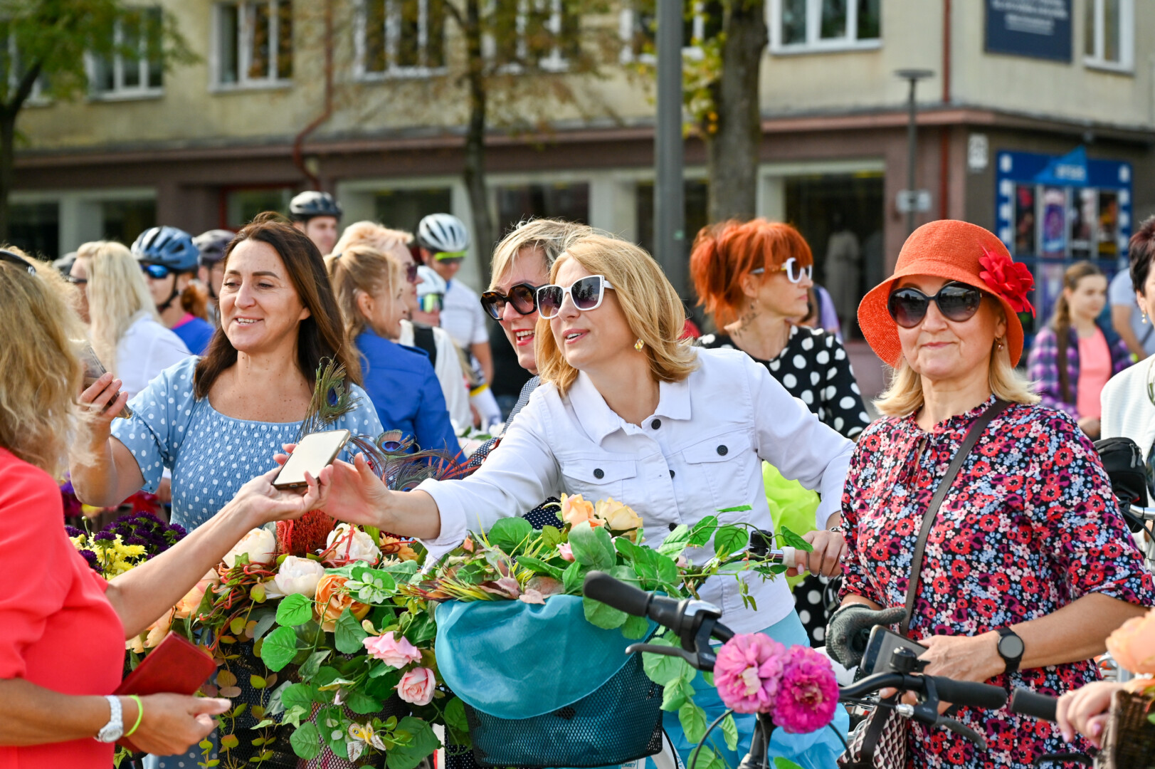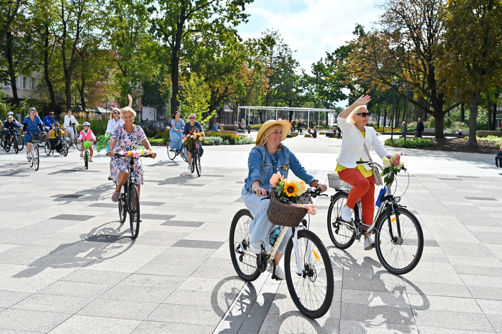 Minint Tarptautinę dieną be automobilio bei Europos judumo savaitę, Panevėžio gatves sekmadienį užtvindė elegantiškos, pasipuošusios moterys ant gėlėmis puoštų dviračių.