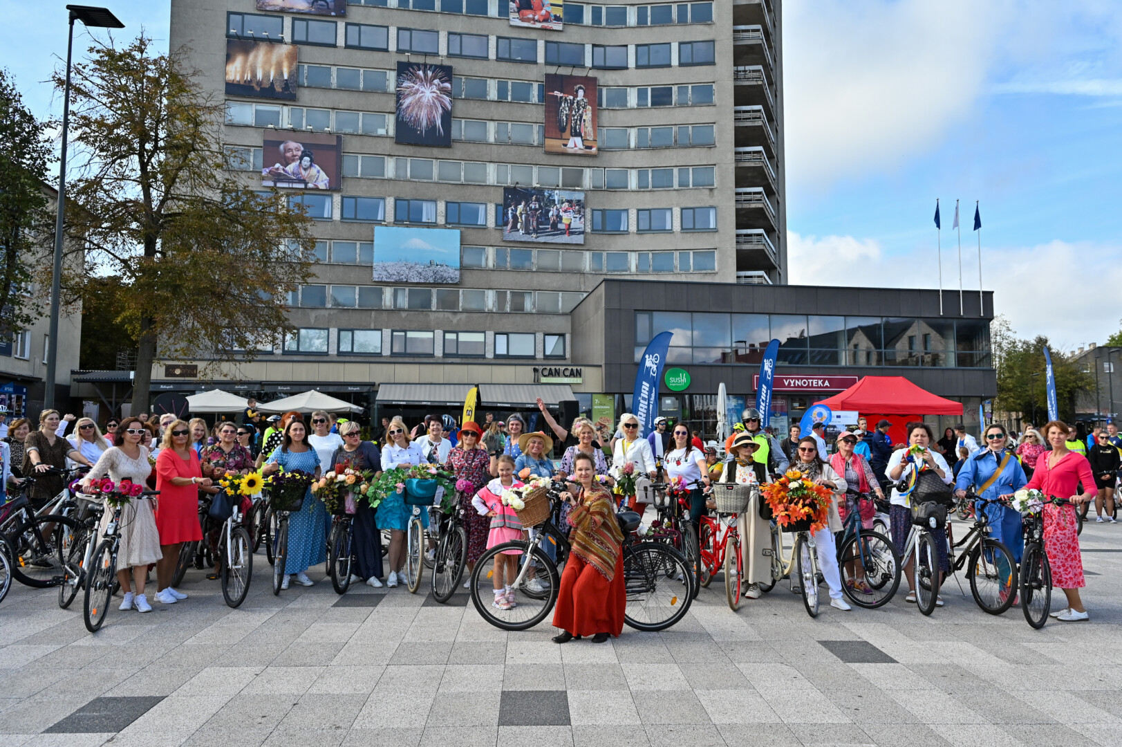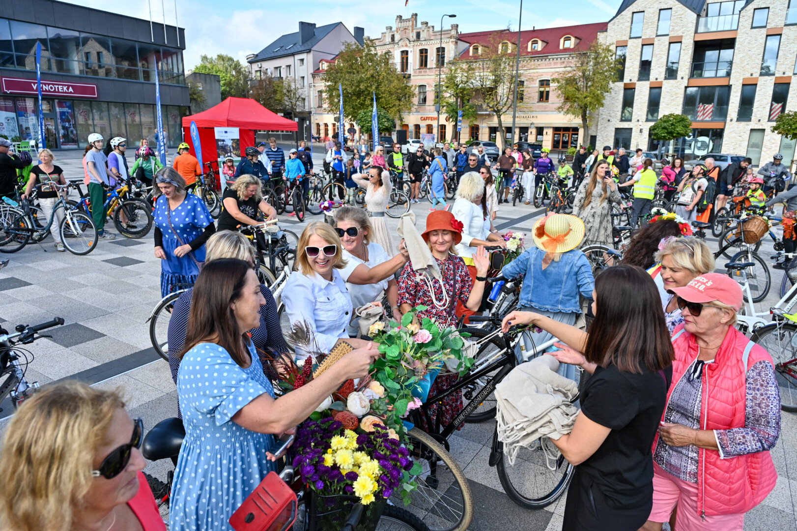 Praėjusiais metais „Pasipuošusių moterų važiavimo dviračiais“ akcija pritraukė apie penkias dešimtis damų. Šiemet dalyvių sulaukta dar daugiau, nes į kompaniją joms galėjo prisijungti ir vyrai, ir turintieji negalią, judantys elektriniais vežimėliais.