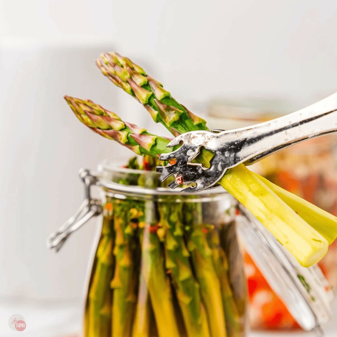 Reikės (2 porcijos): 500 g šparagų, 1 šaukšto druskos, 1 stiklinės obuolių acto, 1,5 šaukšto aliejaus, 1 šaukštelio juodųjų pipirų žirnelių, 1 šaukšto krapų sėklų, 1 šaukšto cukraus, 2 česnako skiltelių.