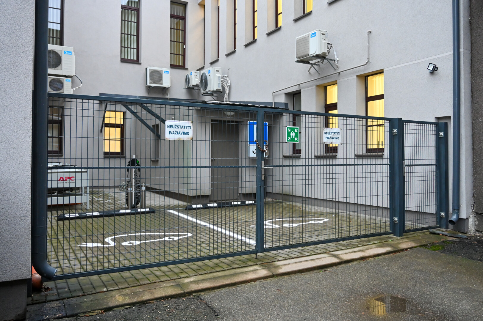 Specialistės teigimu, aikštelę saugantys užrakinti vartai įrengti dar tuomet, kai nebuvo elektromobilių įkrovimo stotelės.