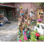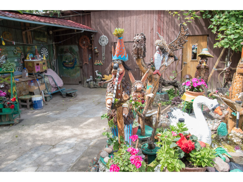 Netoli Šv. apaštalų Petro ir Povilo bažnyčios esantis meniškas kiemas daugeliui prašalaičių nežinomas. Kai čia užsukę susitikome garbaus amžiaus šeimininkę, ji restauravo vieną egzotiškiausių savo skulptūrų – iš medžio šakos ir graikinių riešutų pagamintą krokodilą, kuriam iškrito dantys. A. Savickienė sako, kad meną galima kurti iš bet ko – medžio, molio, cemento, net kankorėžių, gilių ar kaštonų, todėl neišmeta nieko, ką galėtų panaudoti. Moteris visus savo darbus, net kone dvimetrines skulptūras, kukliai vadina suvenyrais. Jos kieme – visas zoologijos sodas: tupi baltos gulbės, stovi medinis vilkas, guli išsirietusi lydeka, lizde ilsisi gandrai.