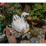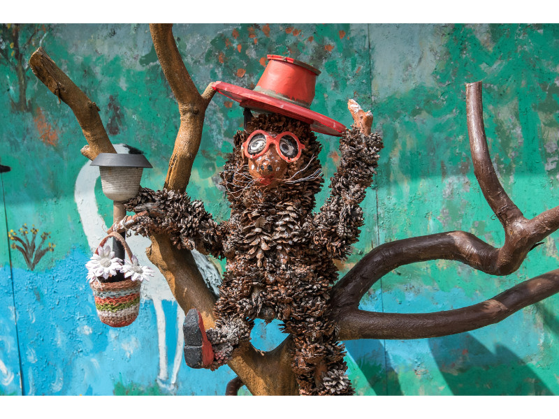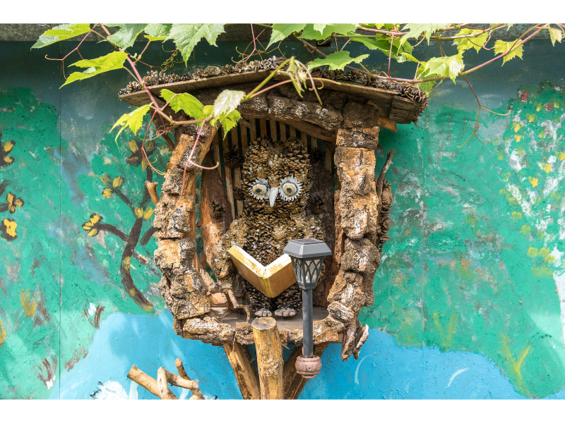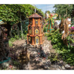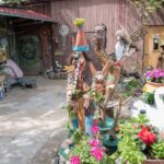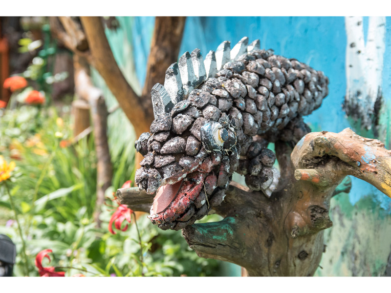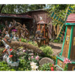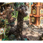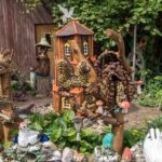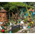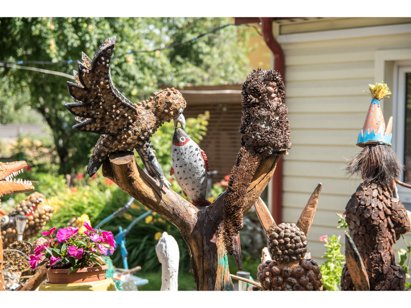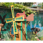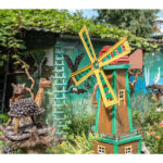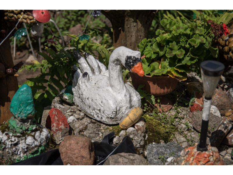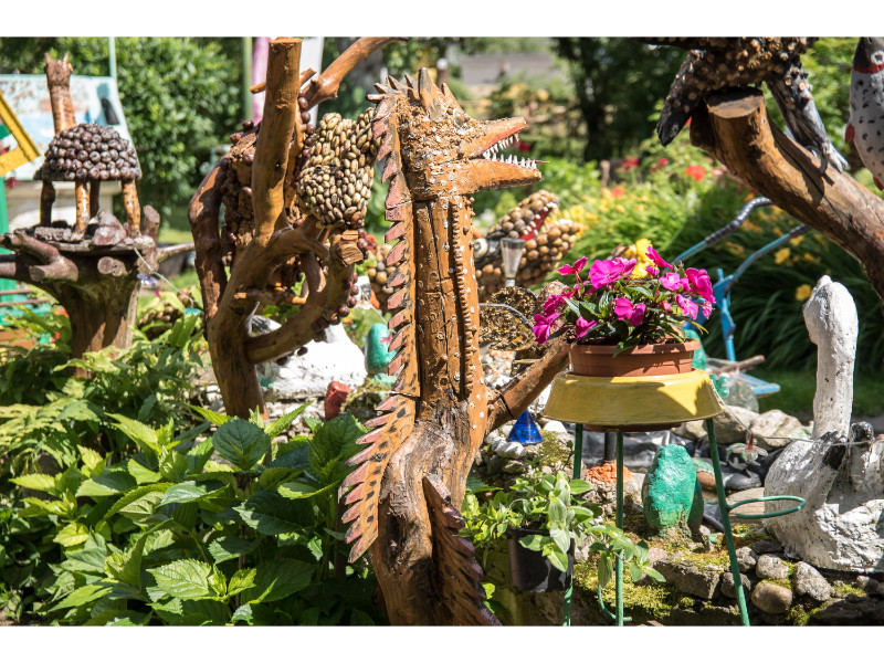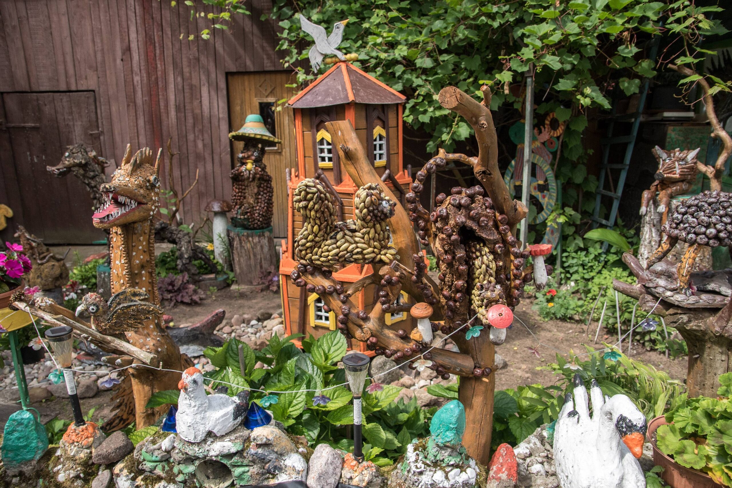 Nors panevėžietei labiausiai prie širdies kurti gyvūnų atvaizdus, sode gausu ir kitokių dirbinių: stovi aukštas iš lentų sukaltas ir puikiausiai besisukantis malūnas, stūkso ne ką menkesnė pilis.