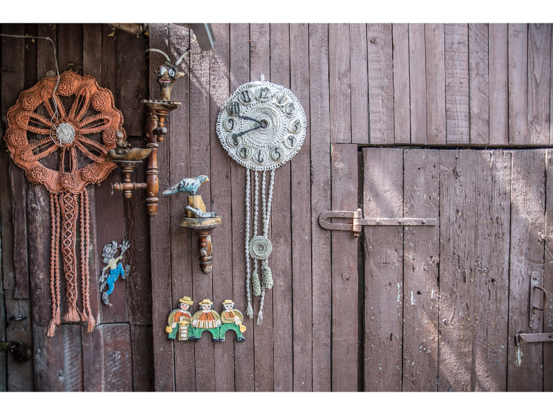 Ponia Adelė parodė ir siuvinėtus paveikslus, nunertus sieninius laikrodžius. Tai, ką matėme panevėžietės kieme, – tikrai ne visi jos „suvenyrai“. Per keturiasdešimt aplinkos puošimo metų daug darbų supuvo, nemažai iškeliavo į giminaičių, kaimynų ar net nepažįstamųjų, kurie užklydę į kiemą susižavi šeimininkės kūriniais, namus.