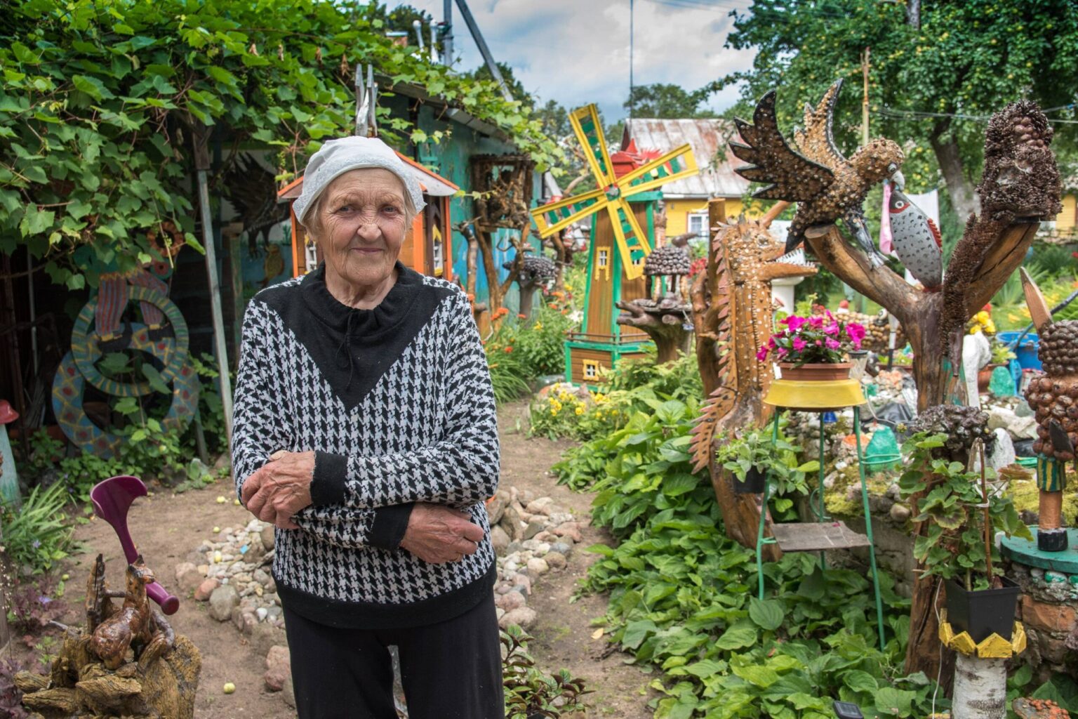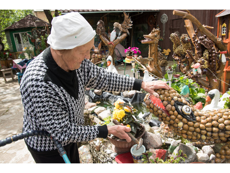 Į devintą dešimtį įkopusios panevėžietės puošiama sodyba stebina praeivius. Adelės Savickienės sukurtame sode – įvairiausios skulptūros, nėriniai, mezginiai ir daugybė piešinių. 85-erių metų močiutei energijos ir kūrybiškumo gali pavydėti ir jaunimas.