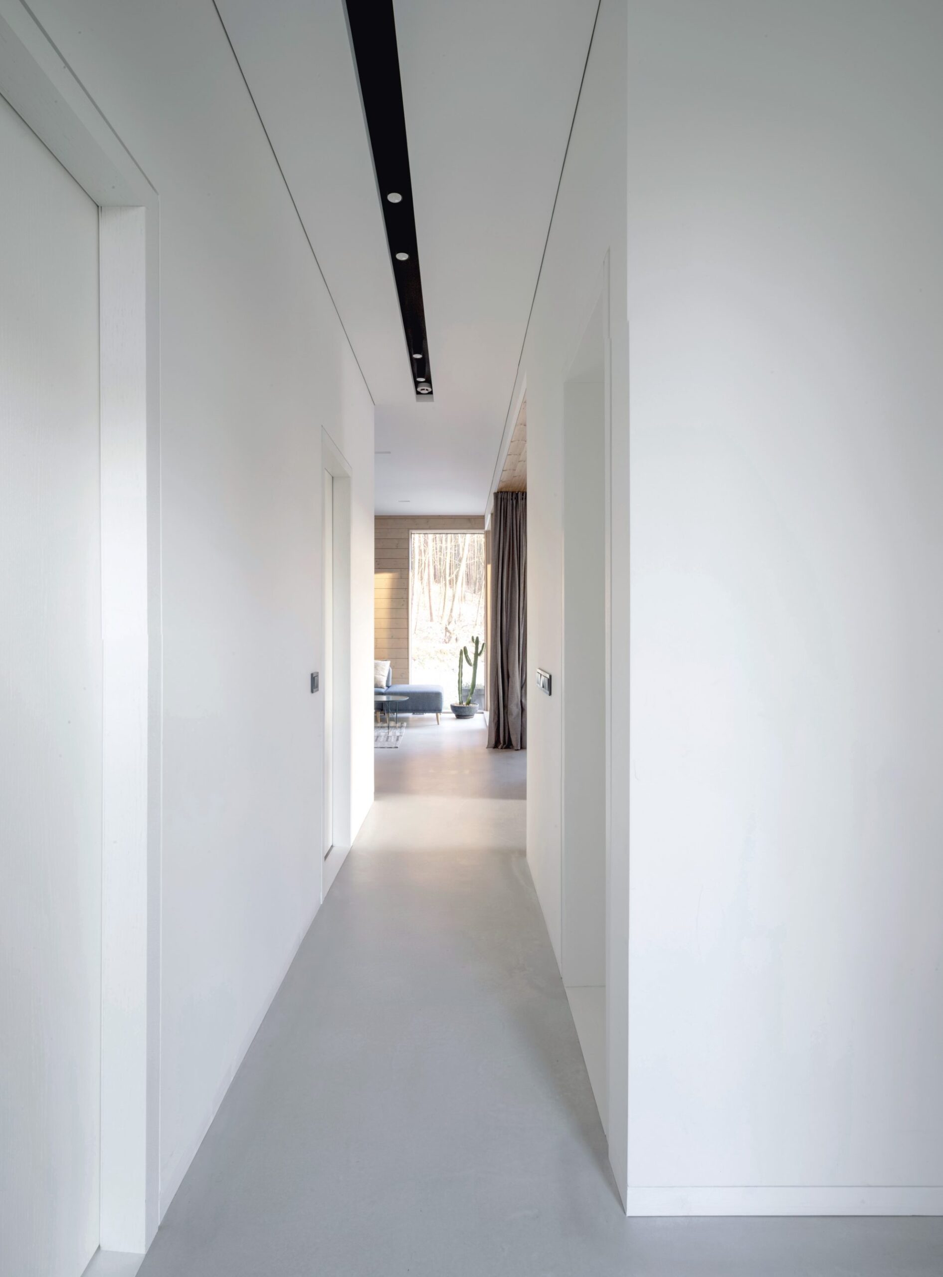 Paklaustas apie netradicinius ar inovatyvius interjero elementus, P. Žakauskas nusišypso. Jų šiuose namuose yra ne vienas, tačiau ir jie paaiškinami gana pragmatiškai. Pavyzdžiui, berėmiai stiklo paketai – ne tik estetiniais, bet ir taupumo sumetimais paremtas sprendimas. Jie dedami atidžiau ir atsargiau, tačiau galutinis vaizdas įdomesnis negu įprastai. Architektas priduria, kad virtuvėje galima rasti nedideles dureles, vedančias į katilinę, tačiau paprastai į svečius užsukantys žmonės net neįtaria, kad už jų yra šeši papildomis kvadratiniai metrai. Į sieną įleistos grindjuostės – dar vienas praktiškas elementas, nes jis baigiasi lygiai su siena ir nedulka.