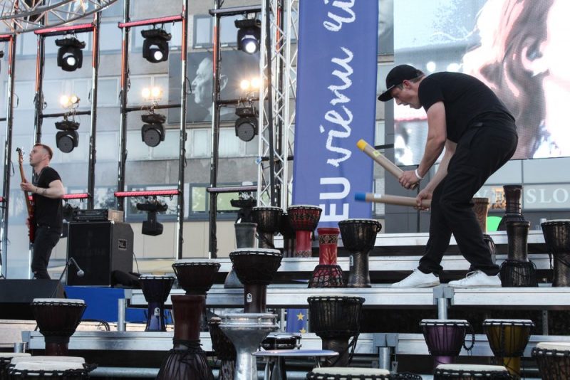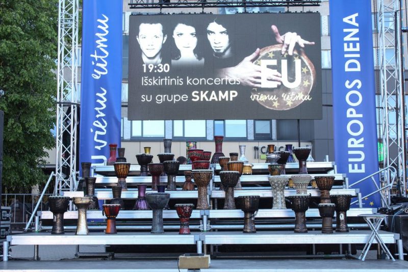 Europos dienai, Europos kultūros paveldo metams ir atkurtos Lietuvos 100-mečiui švęsti suburtas 100 būgnininkų orkestras drauge su atlikėjais iš 28-ių Europos sostinių ir grupe „Skamp“ atliko unikalią muzikinę kompoziciją „Europa vienu ritmu“.
