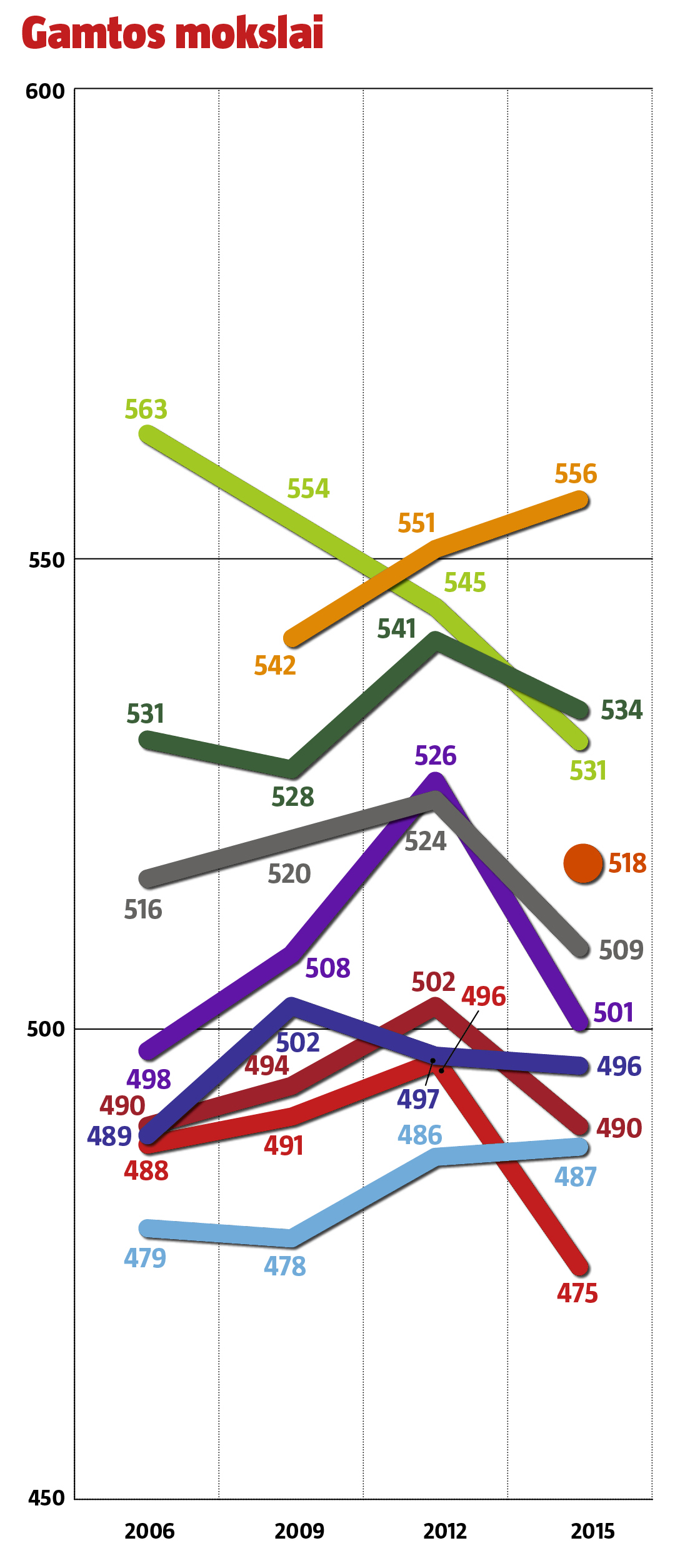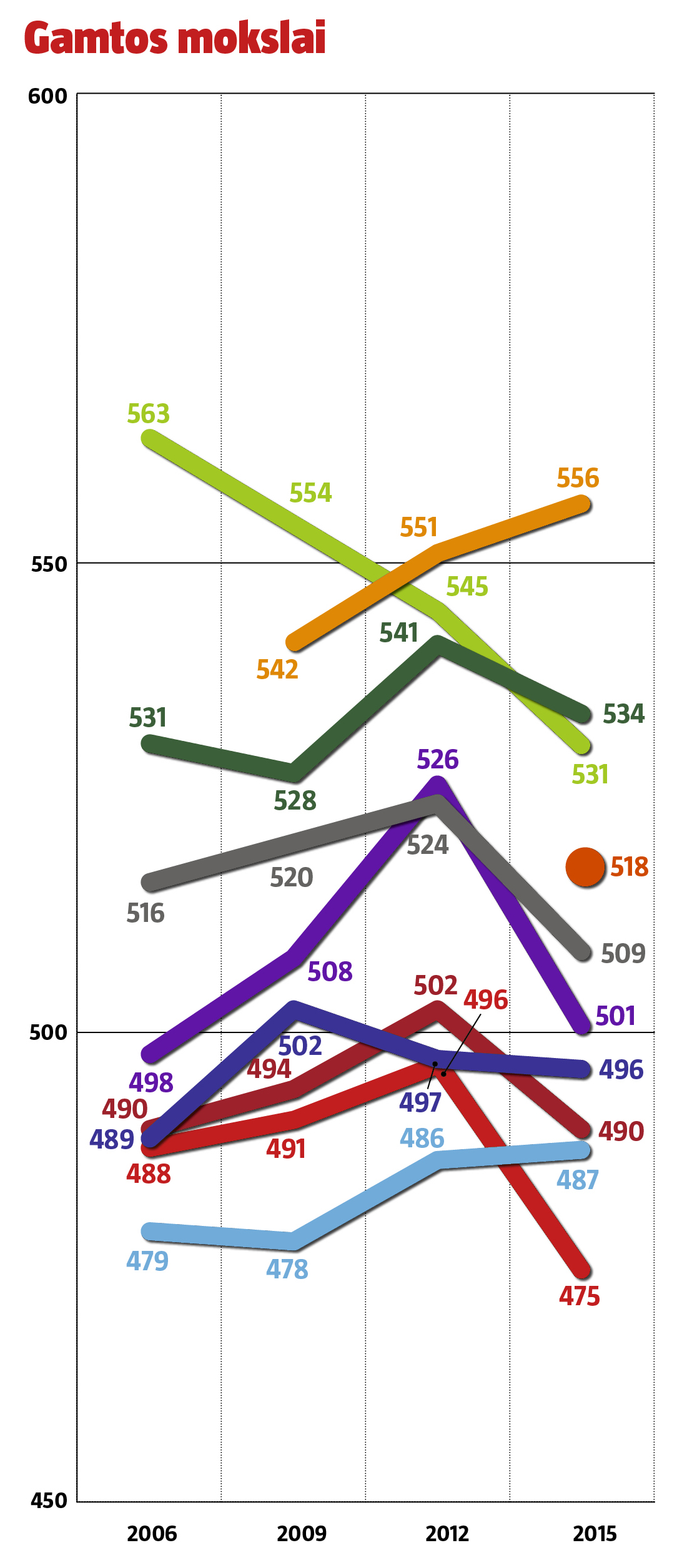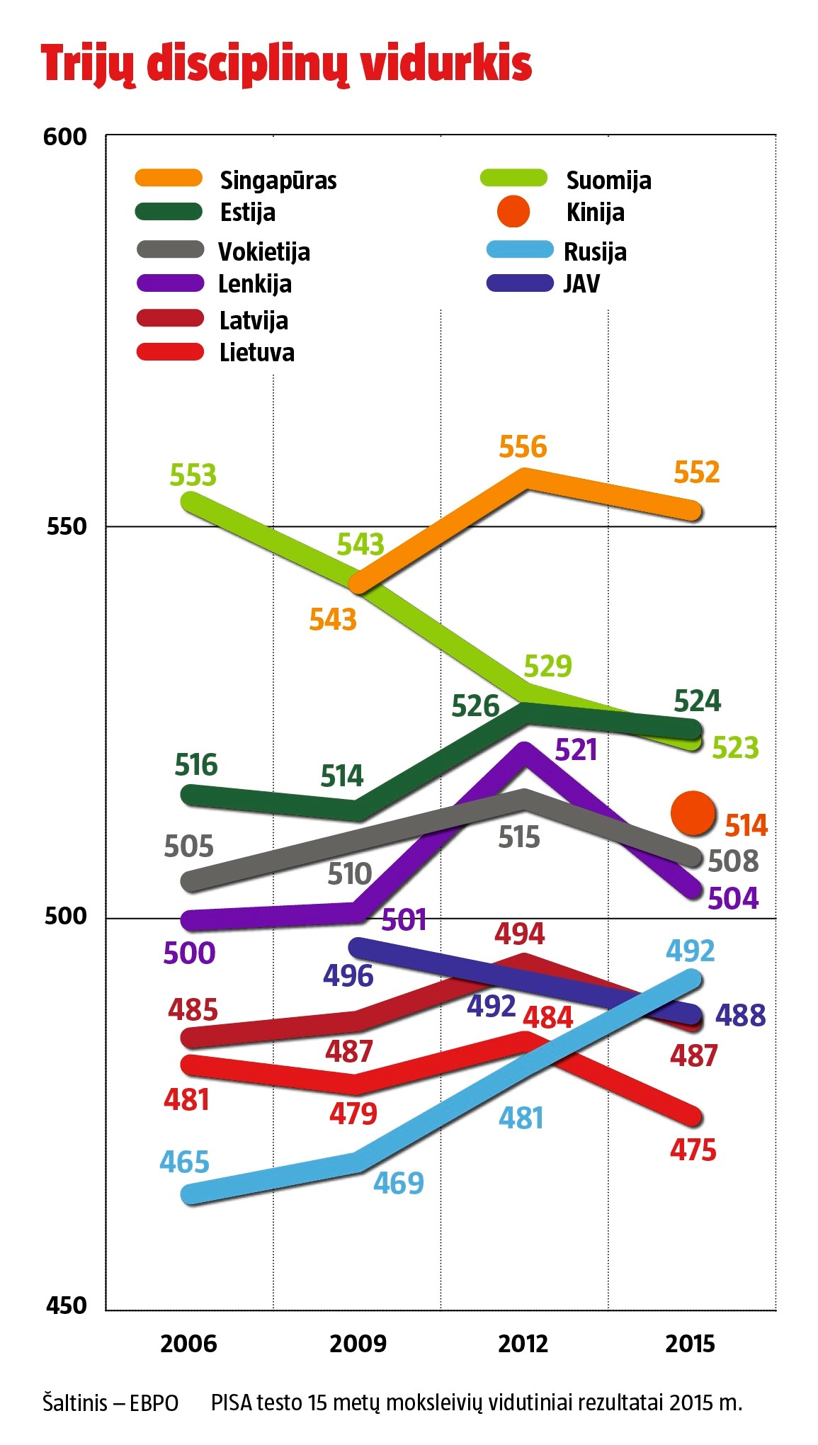 Pagal atskiras disciplinas mūsų šalis taip pat yra ketvirtame dešimtuke. Kitas nuviliantis reitingo rezultatas – Lietuva regresuoja, be to, jos rezultatai prastesni nei kaimynių Lenkijos ir Latvijos, ką ir kalbėti apie Estiją, pakilusią į viršūnę.