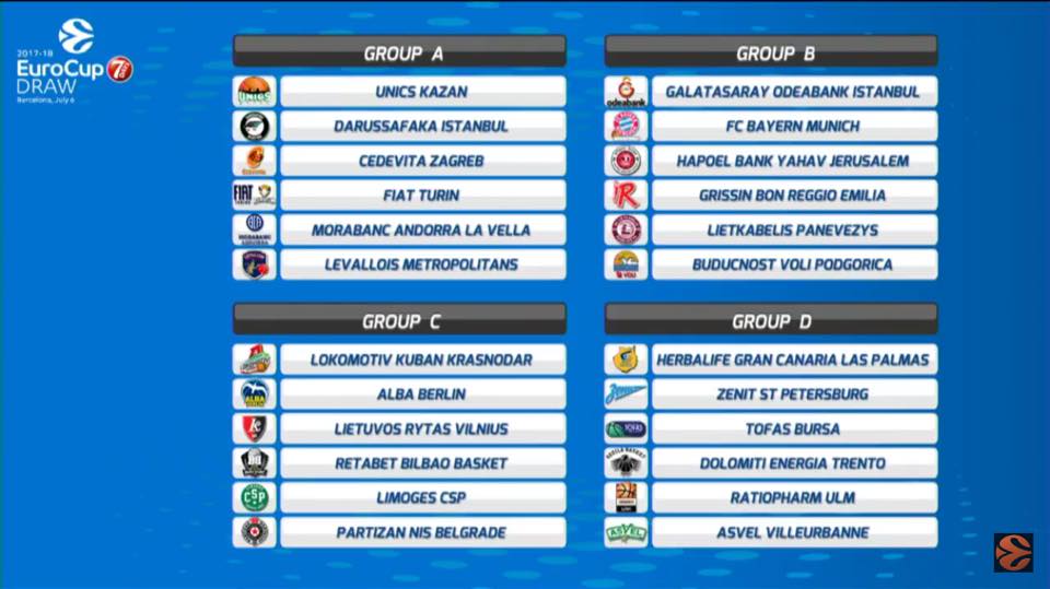 Pirmasis krepšelis: Krasnodaro „Lokomotiv“, Kazanės UNIKS (Rusija), Las Palmaso „Gran Canaria“ (Ispanija), Stambulo „Galatasaray“ (Turkija).