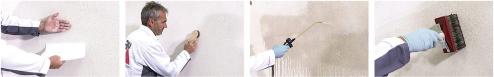 Pašalinus atplaišas, nuvalytą fasadą reikia apdoroti „Baumit MultiPrimer“ gruntu, kuris stabilizuos paviršių ir sustiprins sukibtį su ant jo dengiama priemone. Gruntui išdžiūvus, paviršius sutvirtinamas „Baumit MC55W“ mišiniu ir armuojamas stiklo audinio tinkleliu „Baumit StarTex“. Po to fasadas dažomas pasirinktais „Baumit“ dažais.