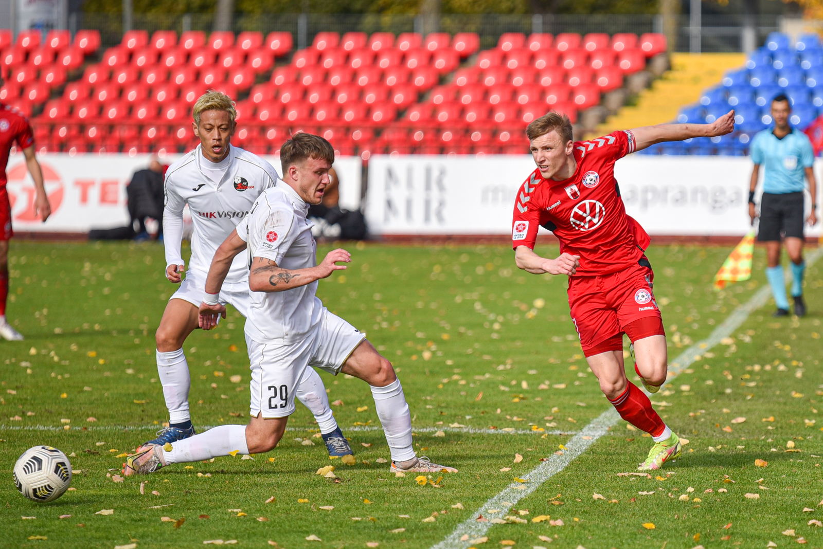 39-ąją rungtynių minutę J. Sarpongas turėjo puikią galimybę padidinti aikštės šeimininkų pranašumą, bet „Panevėžio“ puolėjo smūgiuotas kamuolys atsimušė į „Sūduvos“ vartų virpstą.