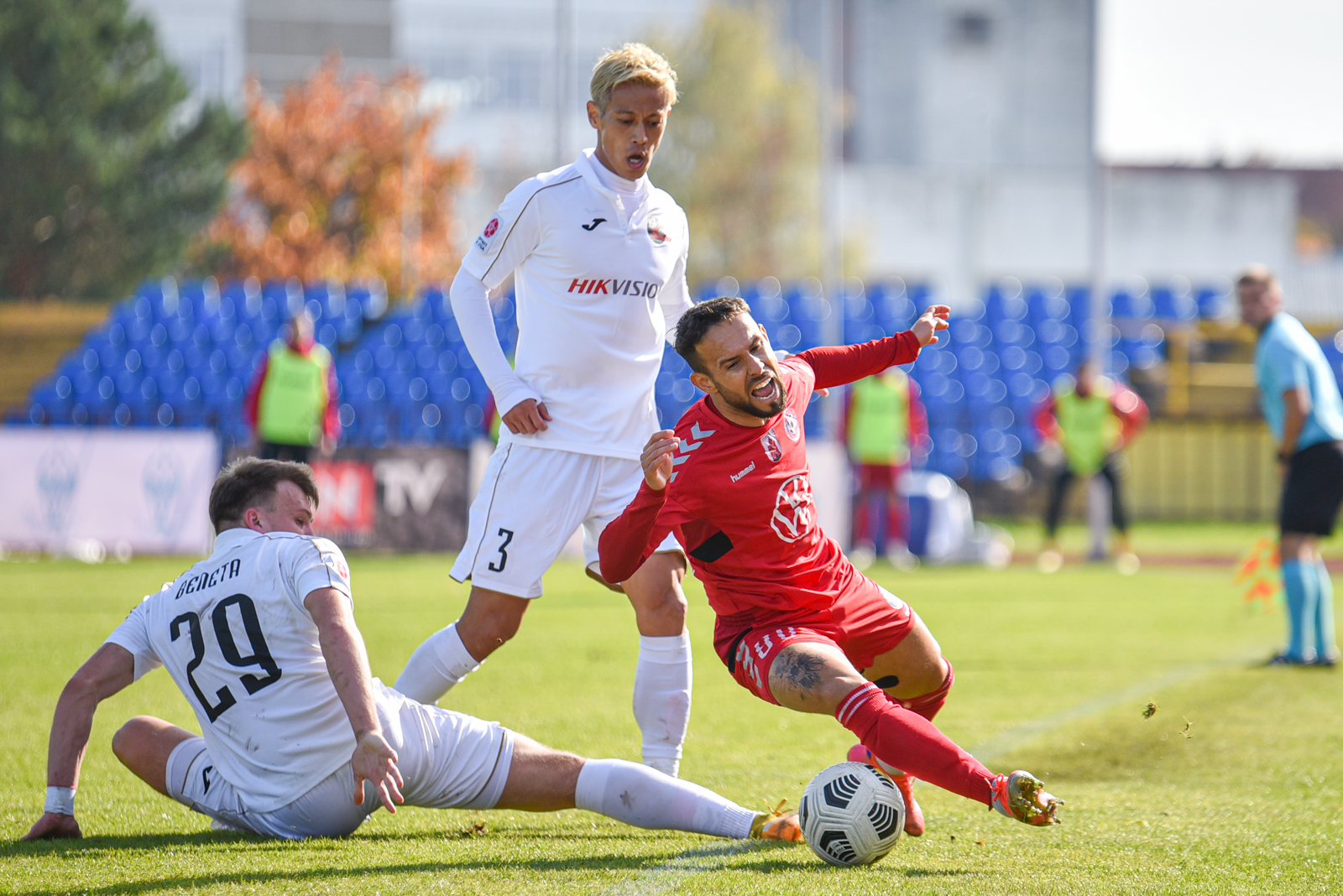 18-ąją mačo minutę ryškiausia „Sūduvos“ žvaigždė Keisuke Honda, perėmęs kamuolį iš panevėžiečių, stipriai smūgiavo iš 18 metrų, bet šeimininkų vartininkas Victoras Golas tame epizode sužaidė patikimai.