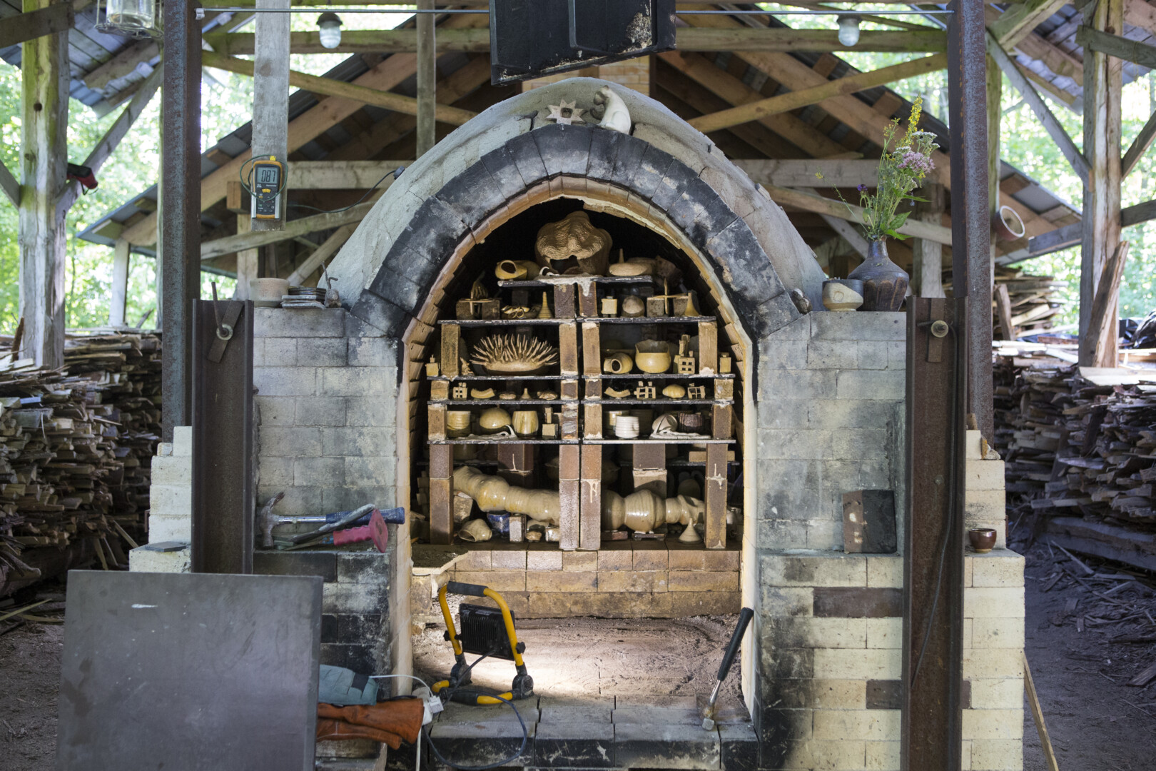 Jo susidomėjimas stiklo gamybos pramonėje naudojama ugniai atsparia akmens mase paskatino eksperimentuoti su šia medžiaga. Kūrybinį procesą palaimino ir rėmė Stiklo fabriko vadovybė, ypač tuometis direktorius Stasys Stoškus. 1983 m. į fabriką kūrybinei praktikai atvyko VDI studentai, vadovaujami profesoriaus Juozo Adomonio (kuris 1999 m. taip pat dalyvavo simpoziume), o nuo 1984 m. čia imta rengti lietuvių keramikų kūrybinius seminarus. Visą tą laiką menininkai naudojosi aukšto degimo dujine krosnimi, kurioje darbus degdavo 1380° C temperatūroje. Išskirtinis krosnies dydis (aukštis – 1,80 m, plotas – 12 kv. m, tūris – 20 kub. m) leido sukurti įspūdingo mastelio kūrinius, kurie vėliau tapo kolekcijos ir paties simpoziumo skiriamuoju ženklu.