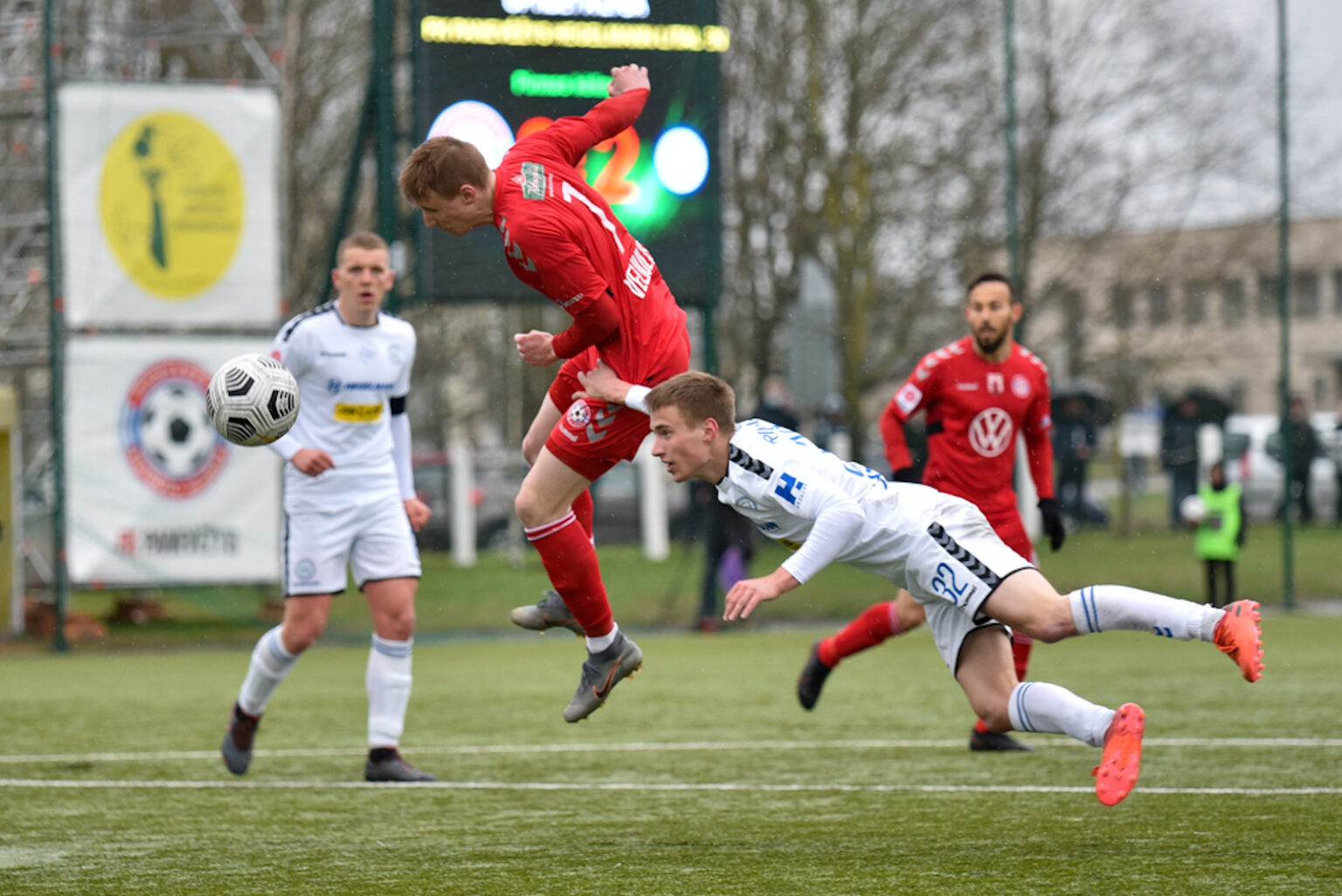 Po šešių minučių puikiai sužaidęs Rafaelis Floro atliko tikslų perdavimą Eligijui Jankauskui, kuris stipriai smūgiavo į „Hegelmann Litauen“ vartus. Svečių vartininkas Ignas Plūkas kamuolį atmušė, bet prie jo pirmasis suskubęs Elivelto pelnė antrąjį mačo įvartį.