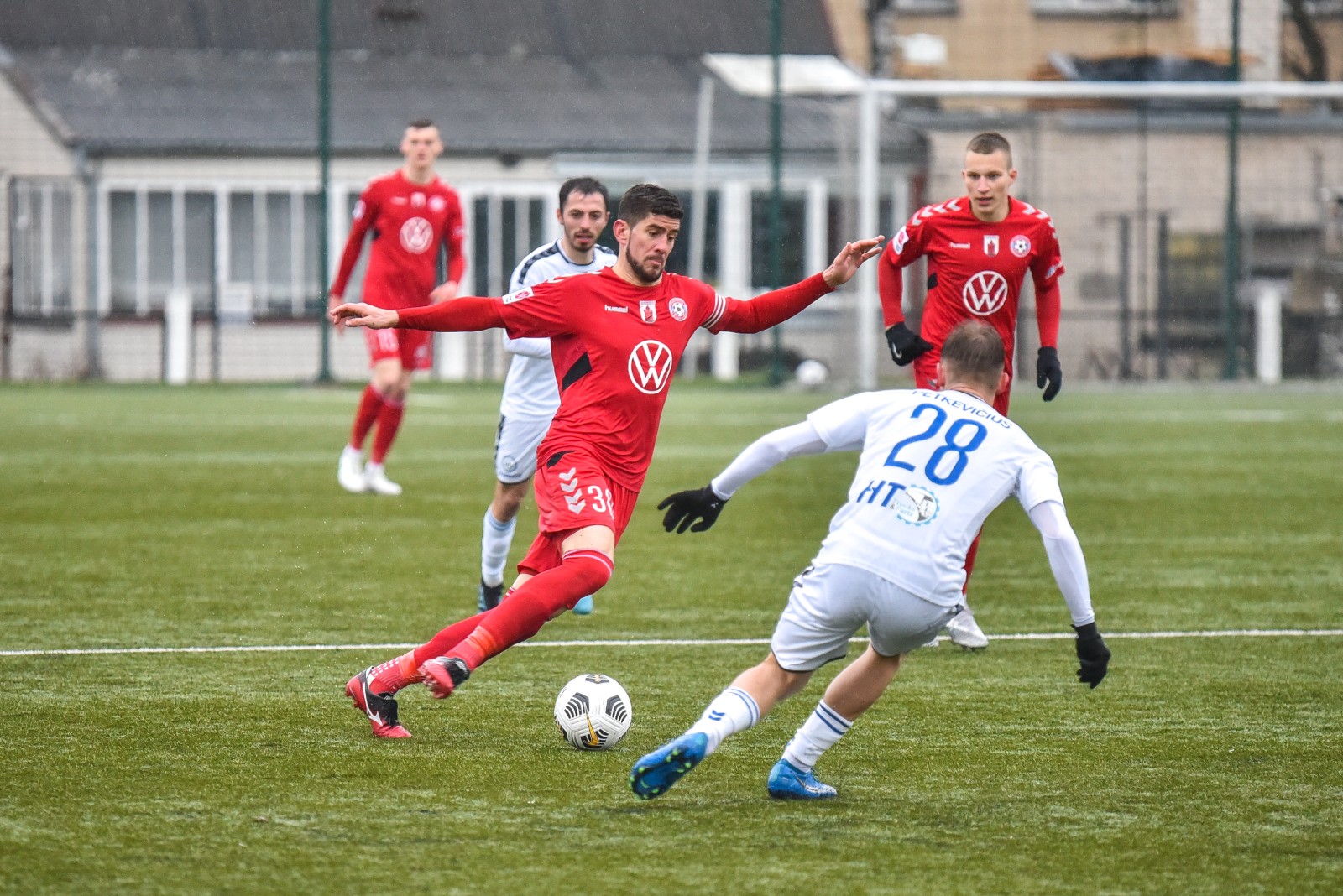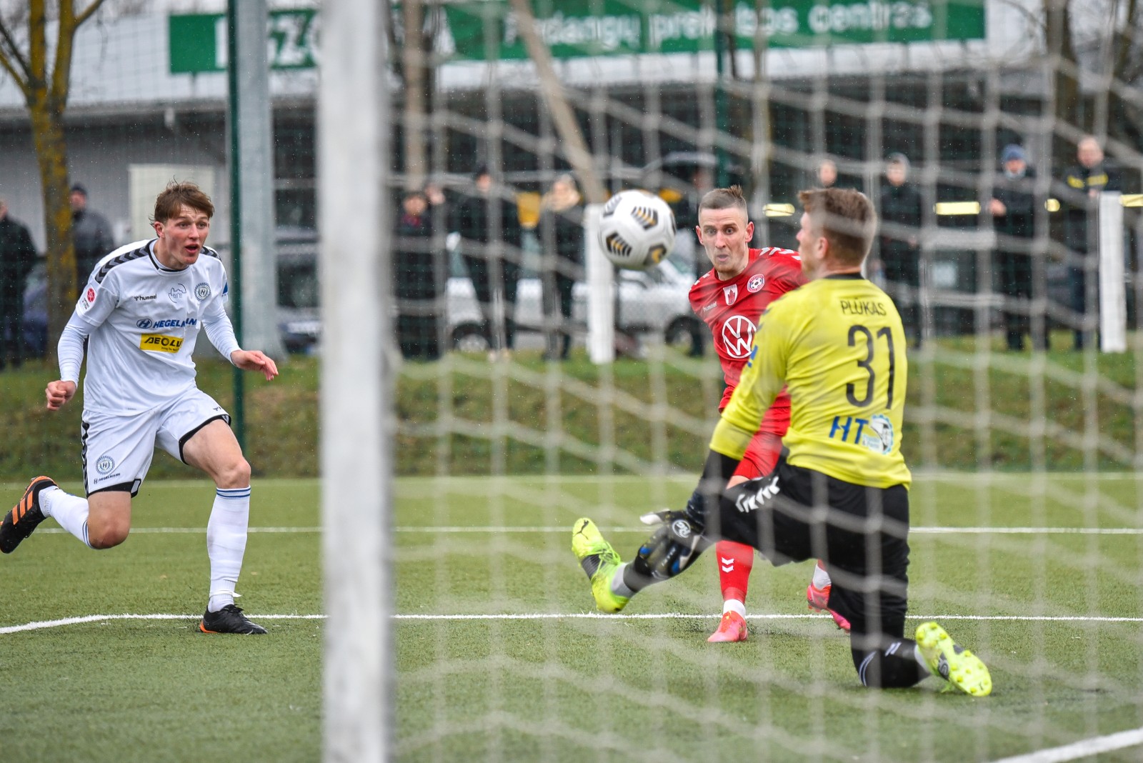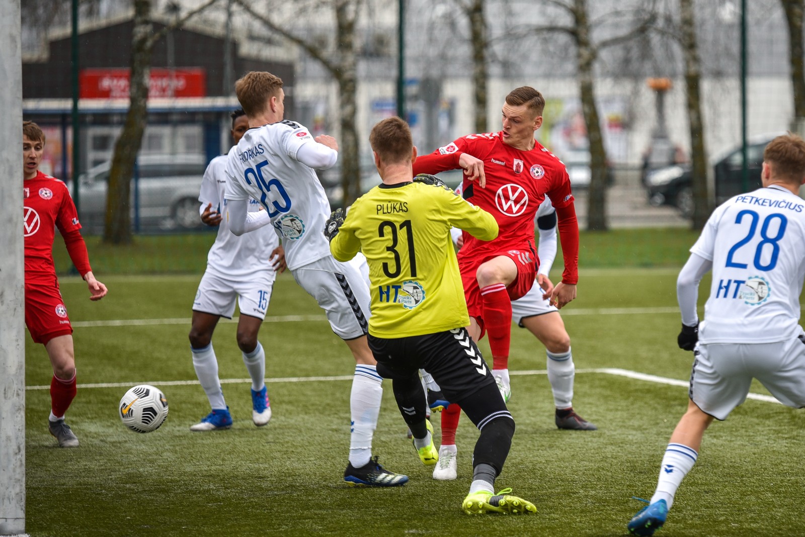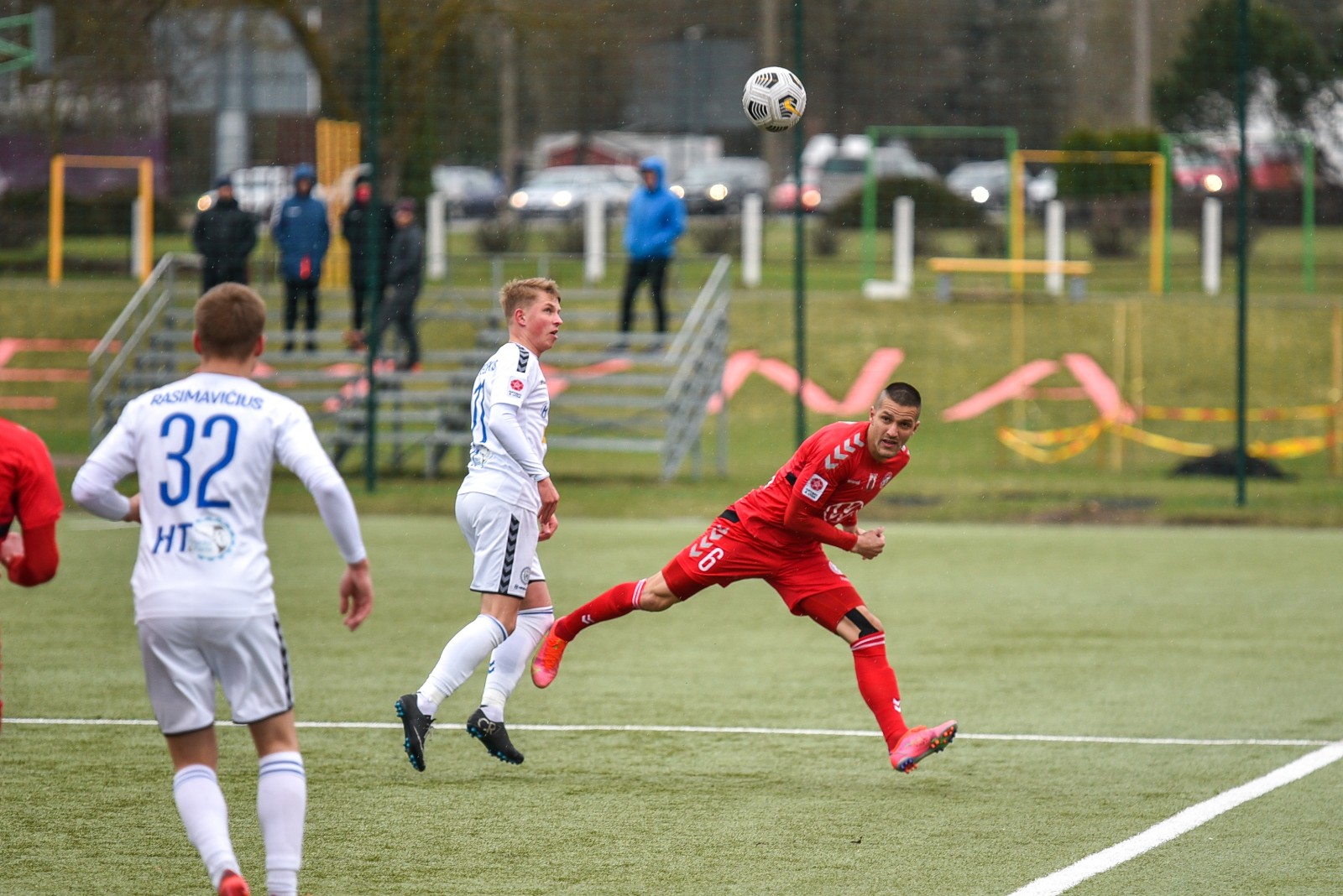Po šešių minučių puikiai sužaidęs Rafaelis Floro atliko tikslų perdavimą Eligijui Jankauskui, kuris stipriai smūgiavo į „Hegelmann Litauen“ vartus. Svečių vartininkas Ignas Plūkas kamuolį atmušė, bet prie jo pirmasis suskubęs Elivelto pelnė antrąjį mačo įvartį.