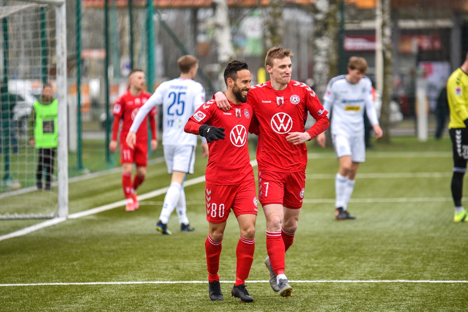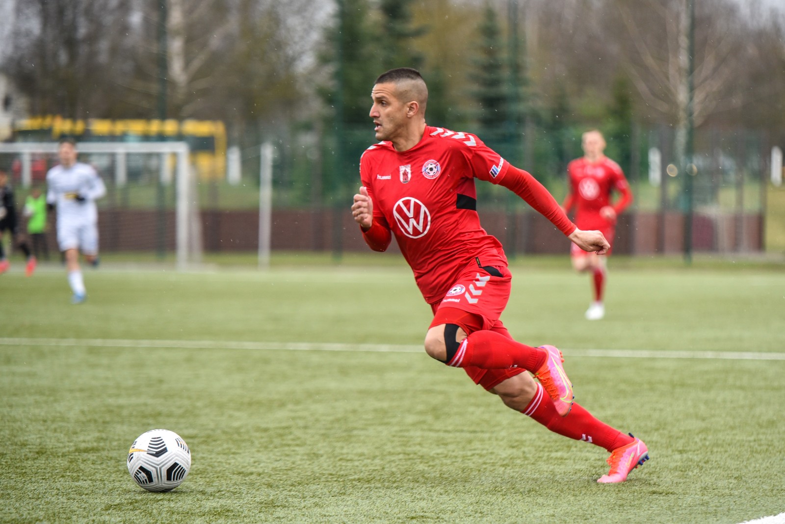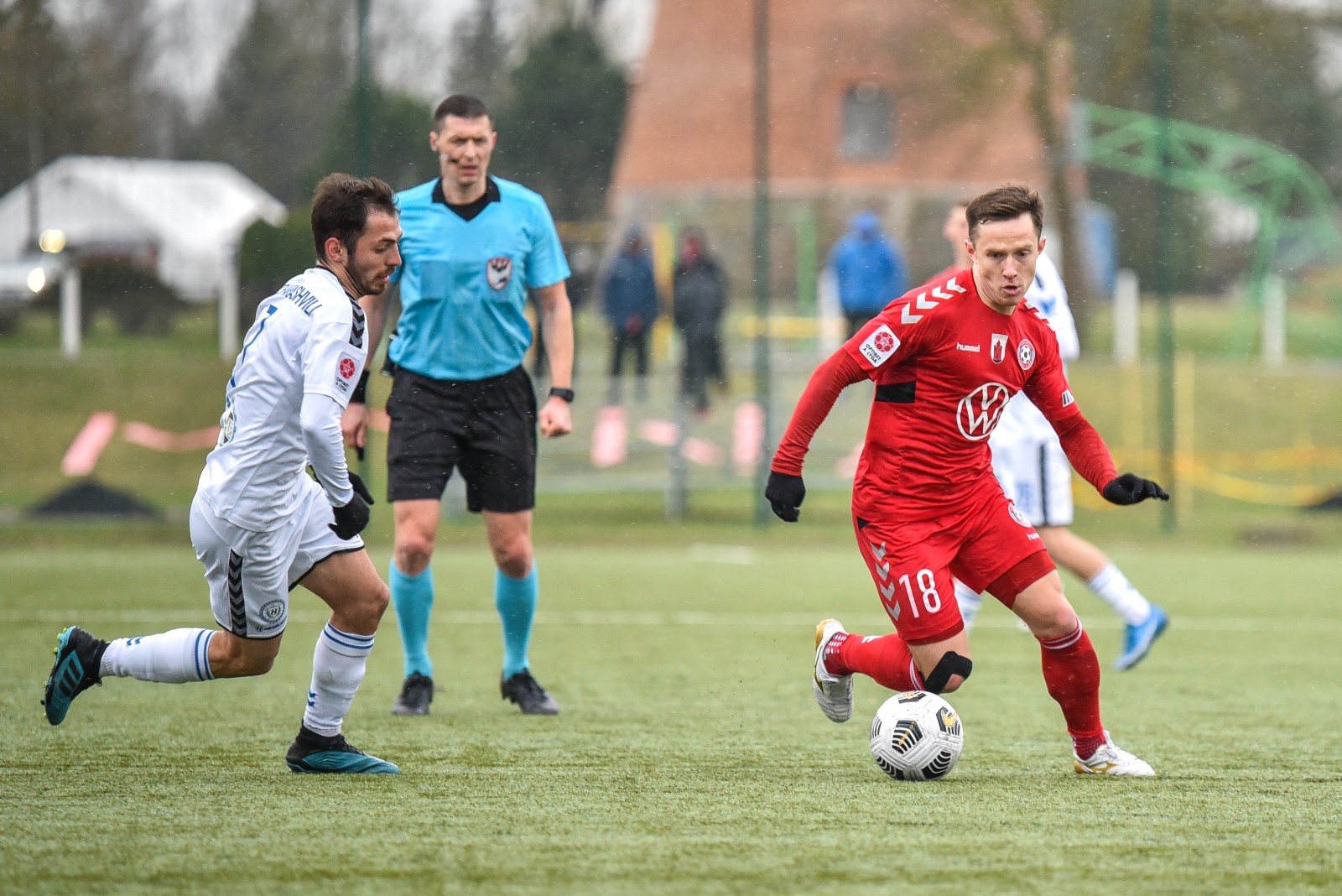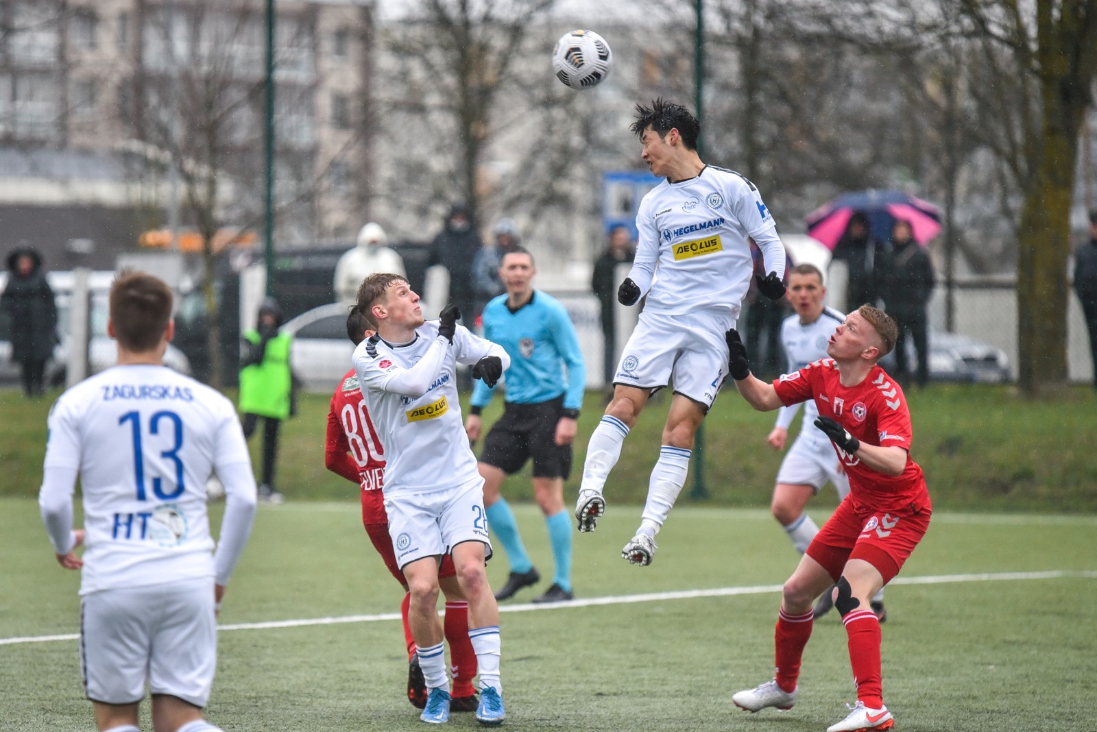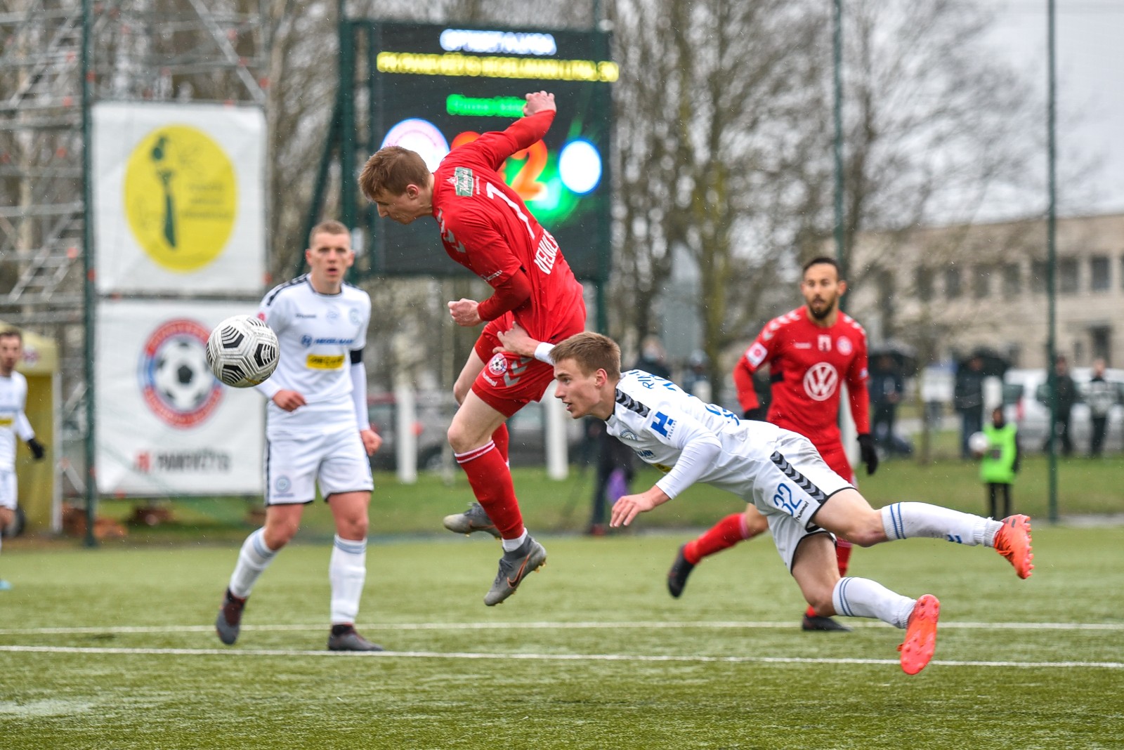 Po šešių minučių puikiai sužaidęs Rafaelis Floro atliko tikslų perdavimą Eligijui Jankauskui, kuris stipriai smūgiavo į „Hegelmann Litauen“ vartus. Svečių vartininkas Ignas Plūkas kamuolį atmušė, bet prie jo pirmasis suskubęs Elivelto pelnė antrąjį mačo įvartį.