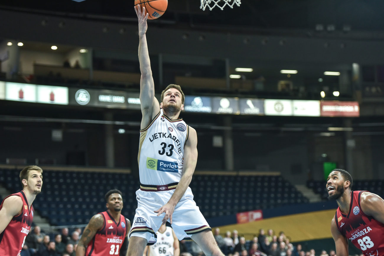 Šiandien FIBA Čempionų lygos atsakomąsias aštuntfinalio rungtynes Panevėžio „Lietkabelis“ namuose žaidė su Saragosos „Casademont“. Šį susitikimą po dratamiškos kovos panevėžiečiai pralaimėjo rezultatu 88:90 (31:25, 23:23, 19:21, 15:21).